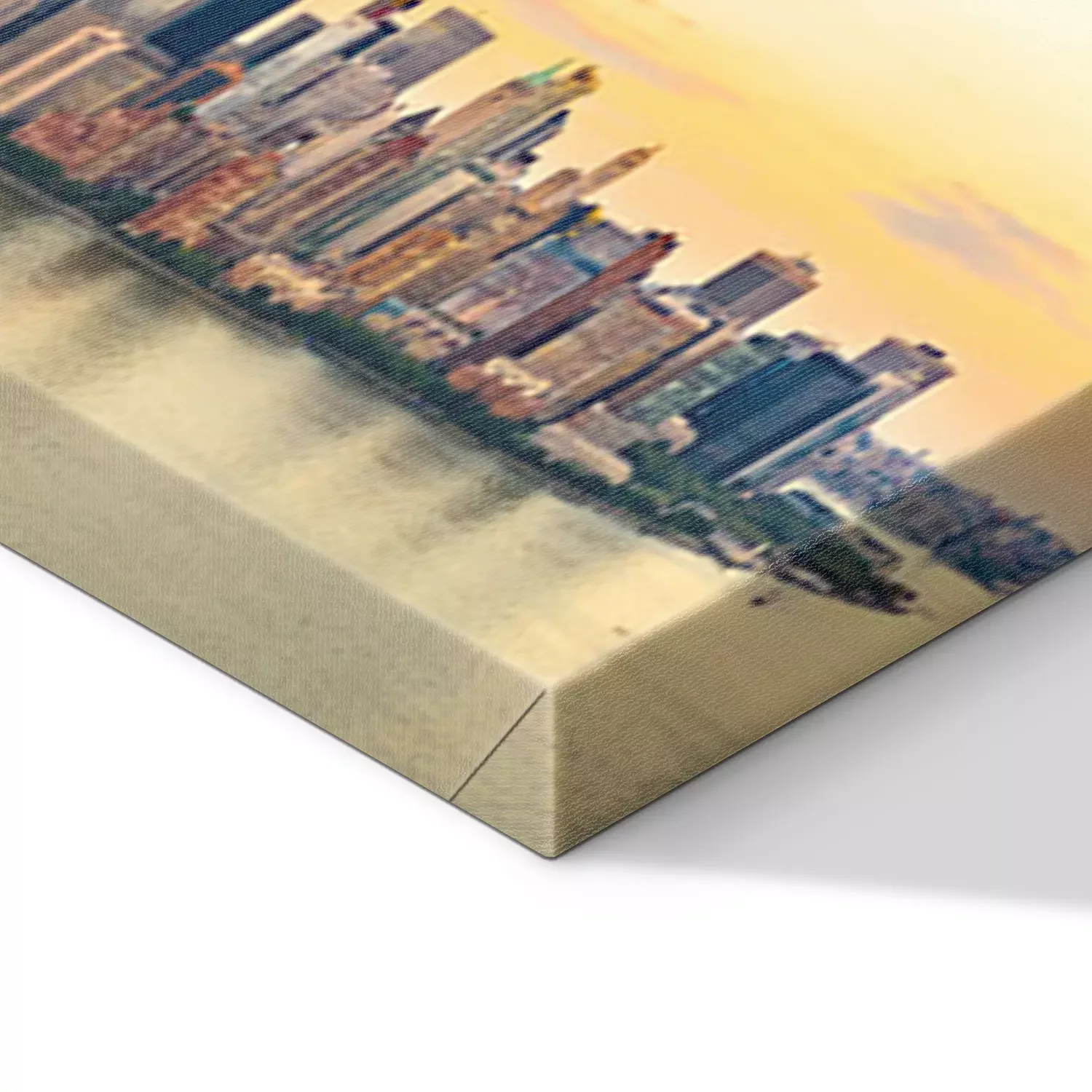 De print wordt aangebracht op hoogwaardig canvas dat op een schildersweefgetouw (spieraam) wordt gespannen. Omdat de print de zijranden bedekt, hoeft het ontwerp niet met een extra kader te worden omlijst. Wij raden ook composities aan die uit meerdere foto's bestaan en zo een coherente compositie vormen.