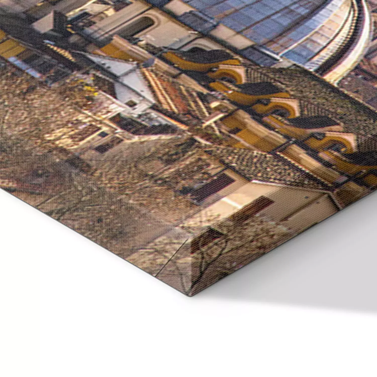 De print wordt aangebracht op hoogwaardig canvas dat op een schildersweefgetouw (spieraam) wordt gespannen. Omdat de print de zijranden bedekt, hoeft het ontwerp niet met een extra kader te worden omlijst. Wij raden ook composities aan die uit meerdere foto's bestaan en zo een coherente compositie vormen.
