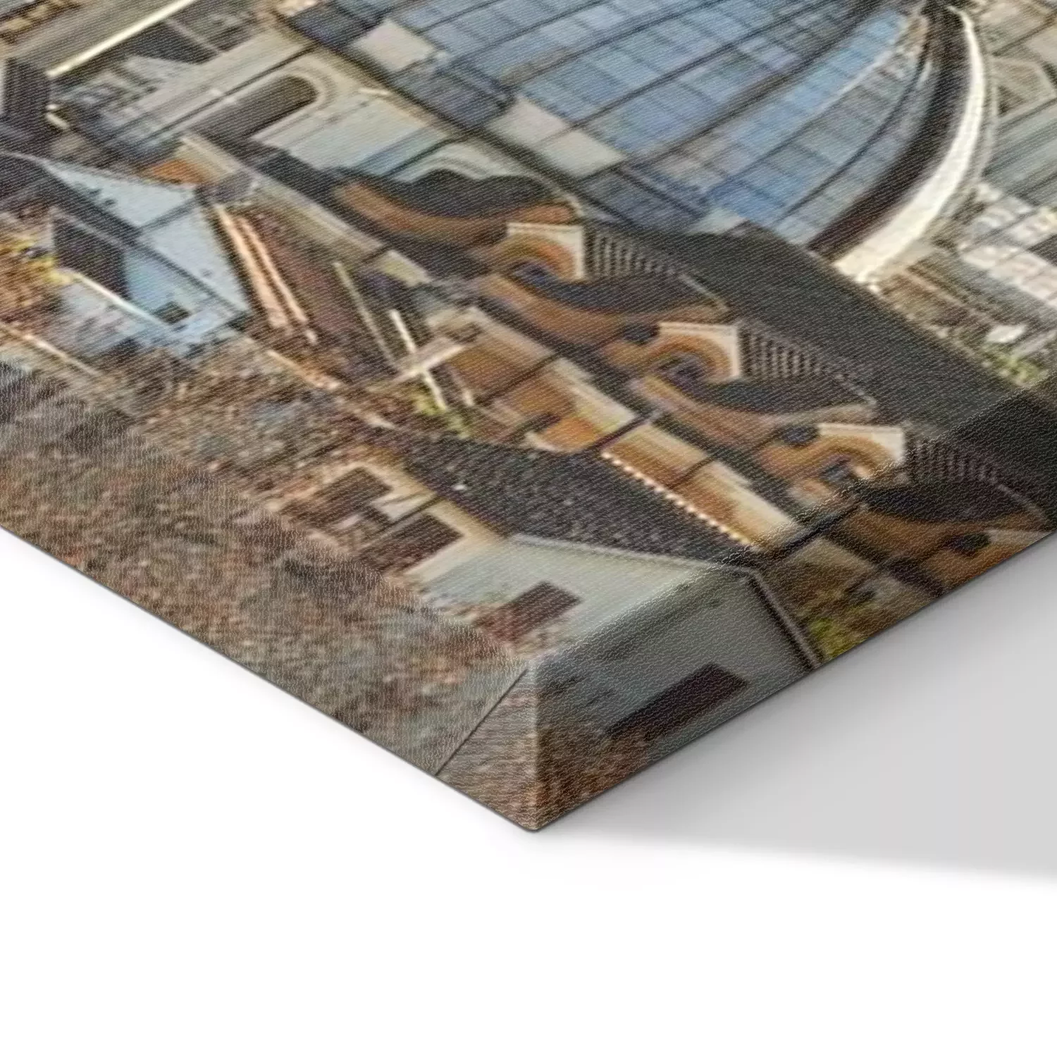 De print wordt aangebracht op hoogwaardig canvas dat op een schildersweefgetouw (spieraam) wordt gespannen. Omdat de print de zijranden bedekt, hoeft het ontwerp niet met een extra kader te worden omlijst. Wij raden ook composities aan die uit meerdere foto's bestaan en zo een coherente compositie vormen.