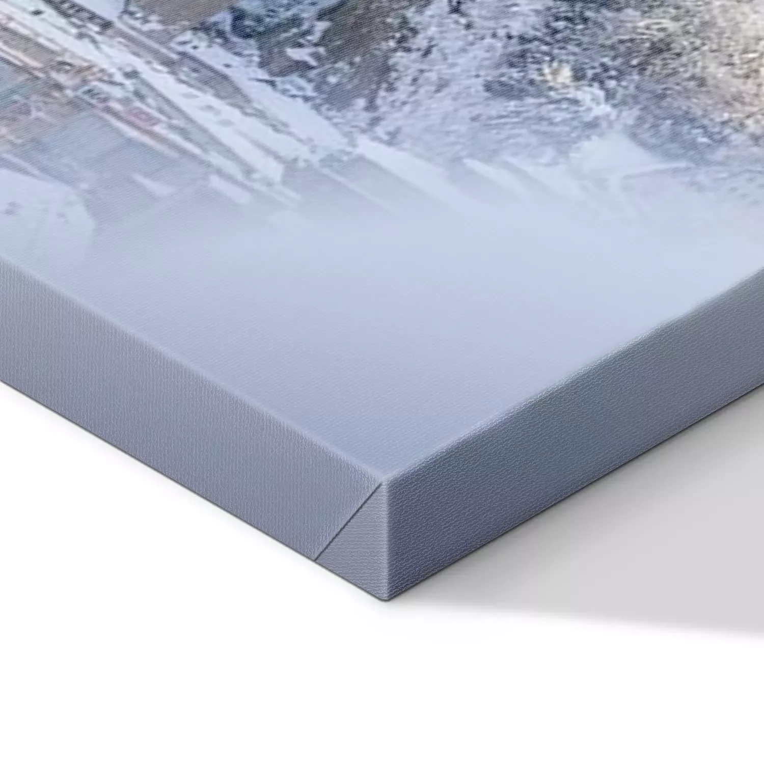 De print wordt aangebracht op hoogwaardig canvas dat op een schildersweefgetouw (spieraam) wordt gespannen. Omdat de print de zijranden bedekt, hoeft het ontwerp niet met een extra kader te worden omlijst. Wij raden ook composities aan die uit meerdere foto's bestaan en zo een coherente compositie vormen.