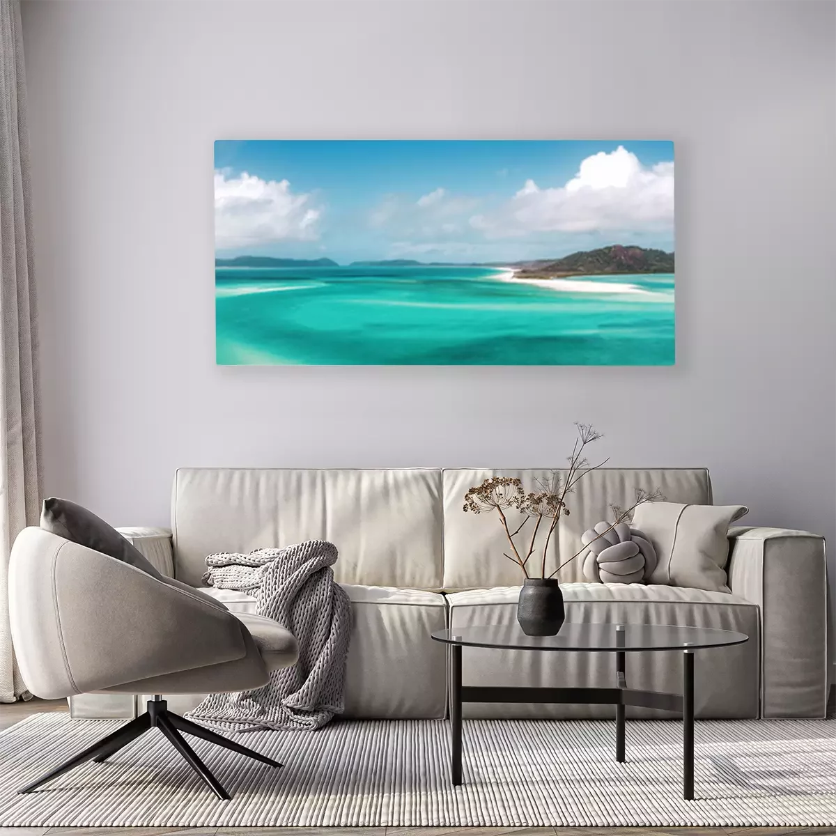 De print wordt aangebracht op hoogwaardig canvas dat op een schildersweefgetouw (spieraam) wordt gespannen. Omdat de print de zijranden bedekt, hoeft het ontwerp niet met een extra kader te worden omlijst. Wij raden ook composities aan die uit meerdere foto's bestaan en zo een coherente compositie vormen.