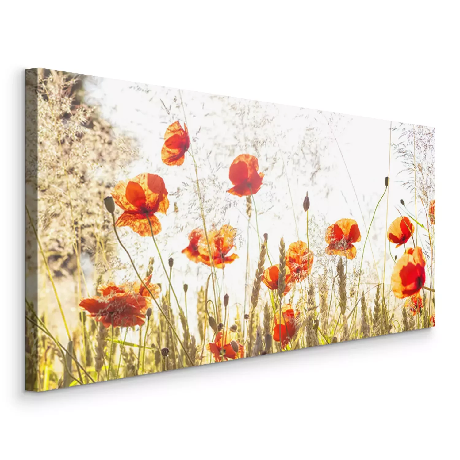 Canvas: Panoramisch uitzicht op retro zonsopgang boven de weide.