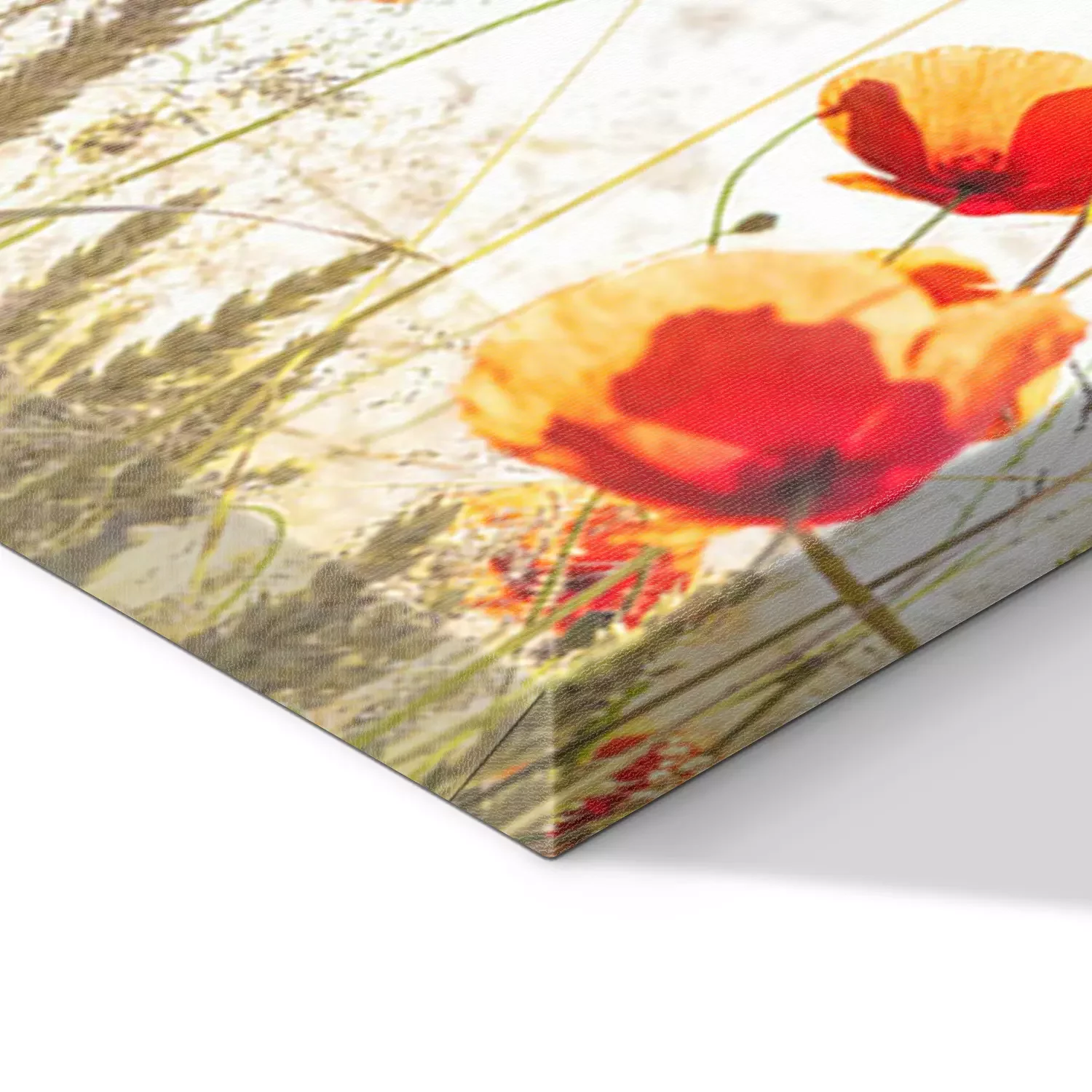 De print wordt aangebracht op hoogwaardig canvas dat op een schildersweefgetouw (spieraam) wordt gespannen. Omdat de print de zijranden bedekt, hoeft het ontwerp niet met een extra kader te worden omlijst. Wij raden ook composities aan die uit meerdere foto's bestaan en zo een coherente compositie vormen.