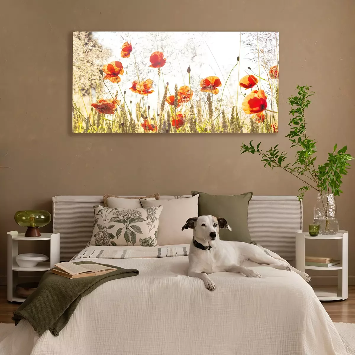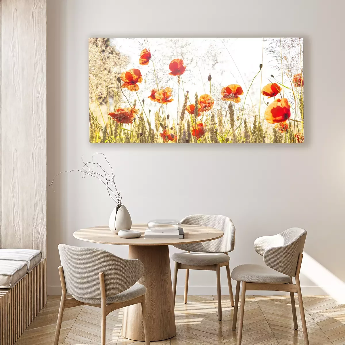 Canvas Panoramisch uitzicht op retro zonsopgang boven de weide.