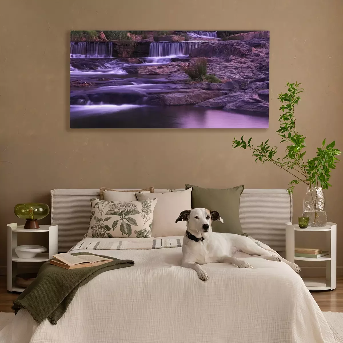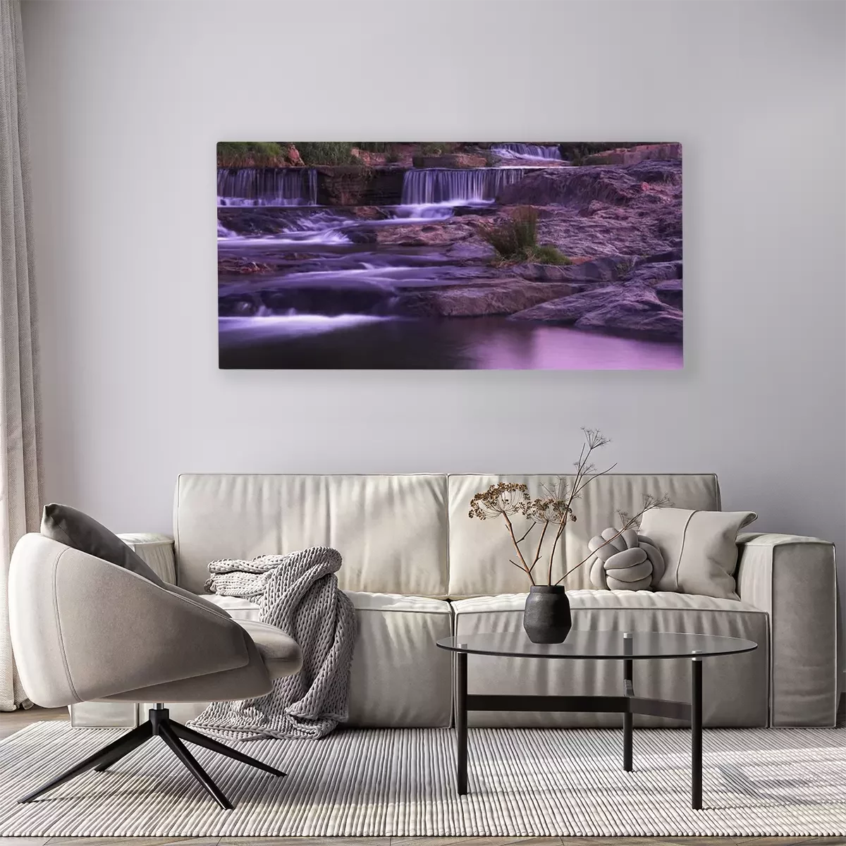 De print wordt aangebracht op hoogwaardig canvas dat op een schildersweefgetouw (spieraam) wordt gespannen. Omdat de print de zijranden bedekt, hoeft het ontwerp niet met een extra kader te worden omlijst. Wij raden ook composities aan die uit meerdere foto's bestaan en zo een coherente compositie vormen.