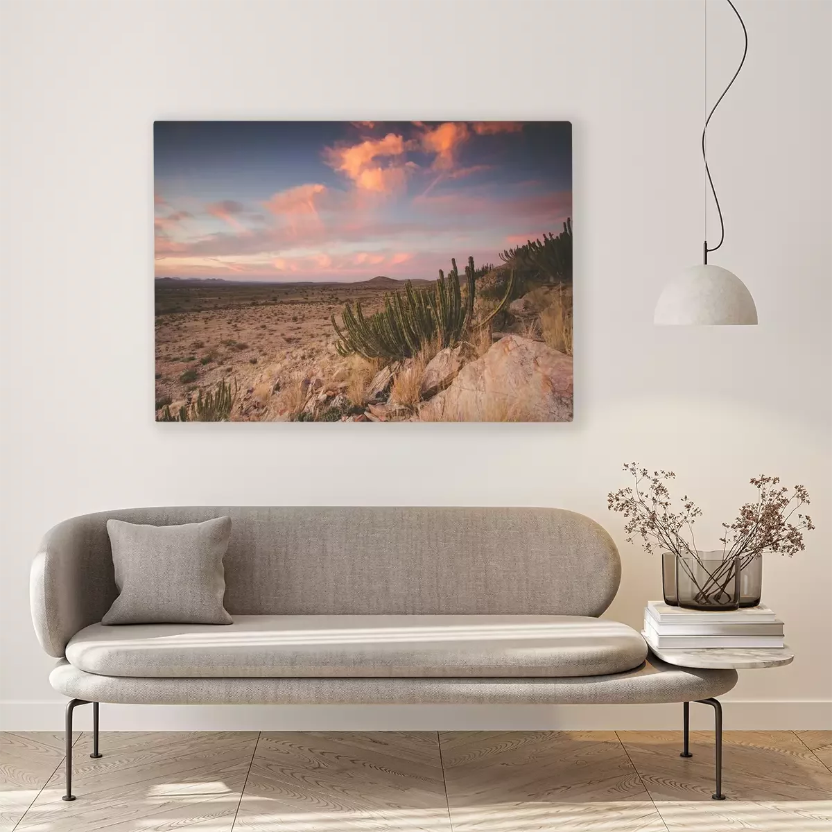 Canvas: Panoramische landschapsfotooverzichten over het kalahari-gebied in Zuid-Afrika