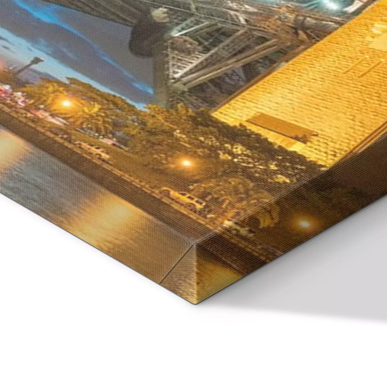 De print wordt aangebracht op hoogwaardig canvas dat op een schildersweefgetouw (spieraam) wordt gespannen. Omdat de print de zijranden bedekt, hoeft het ontwerp niet met een extra kader te worden omlijst. Wij raden ook composities aan die uit meerdere foto's bestaan en zo een coherente compositie vormen.