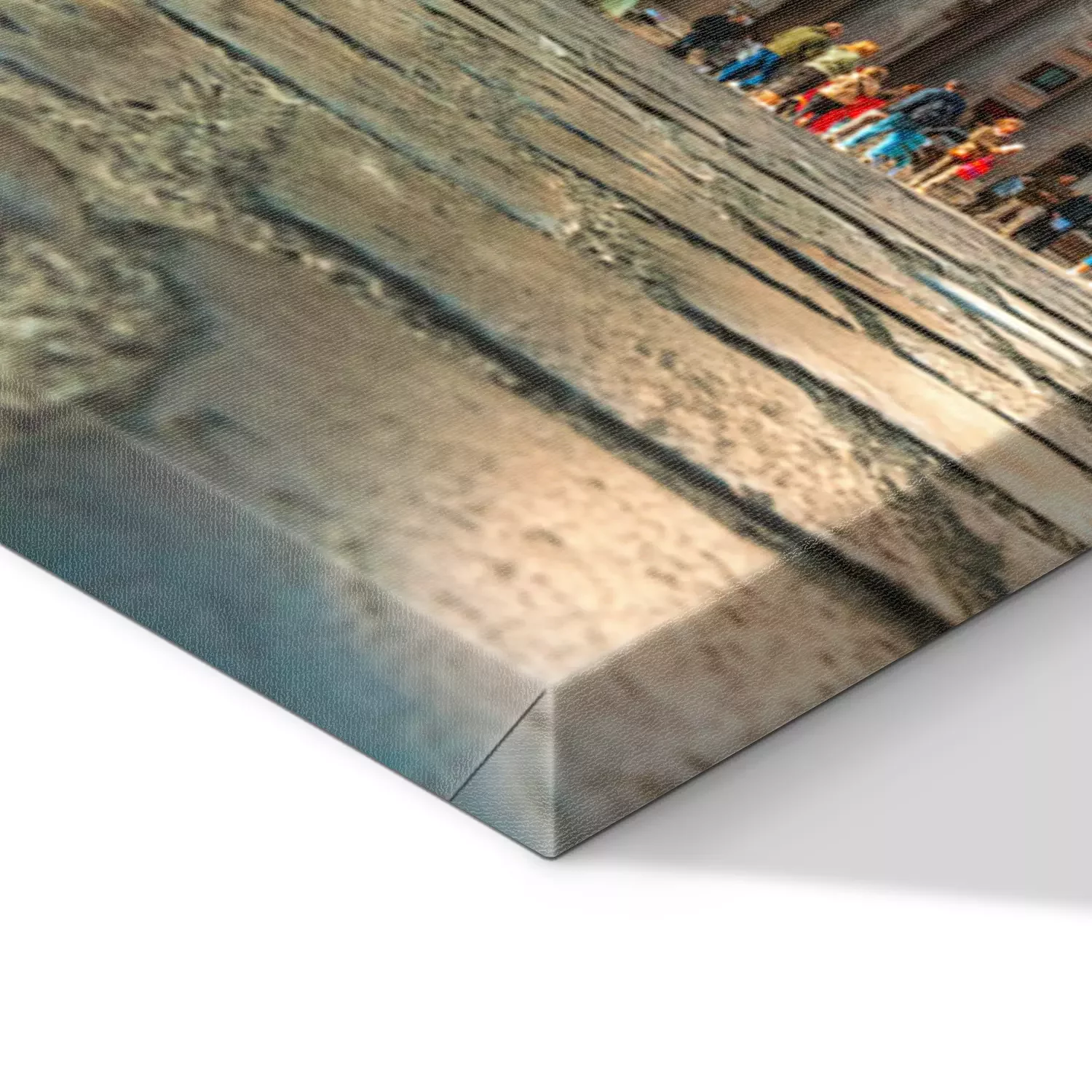 De print wordt aangebracht op hoogwaardig canvas dat op een schildersweefgetouw (spieraam) wordt gespannen. Omdat de print de zijranden bedekt, hoeft het ontwerp niet met een extra kader te worden omlijst. Wij raden ook composities aan die uit meerdere foto's bestaan en zo een coherente compositie vormen.
