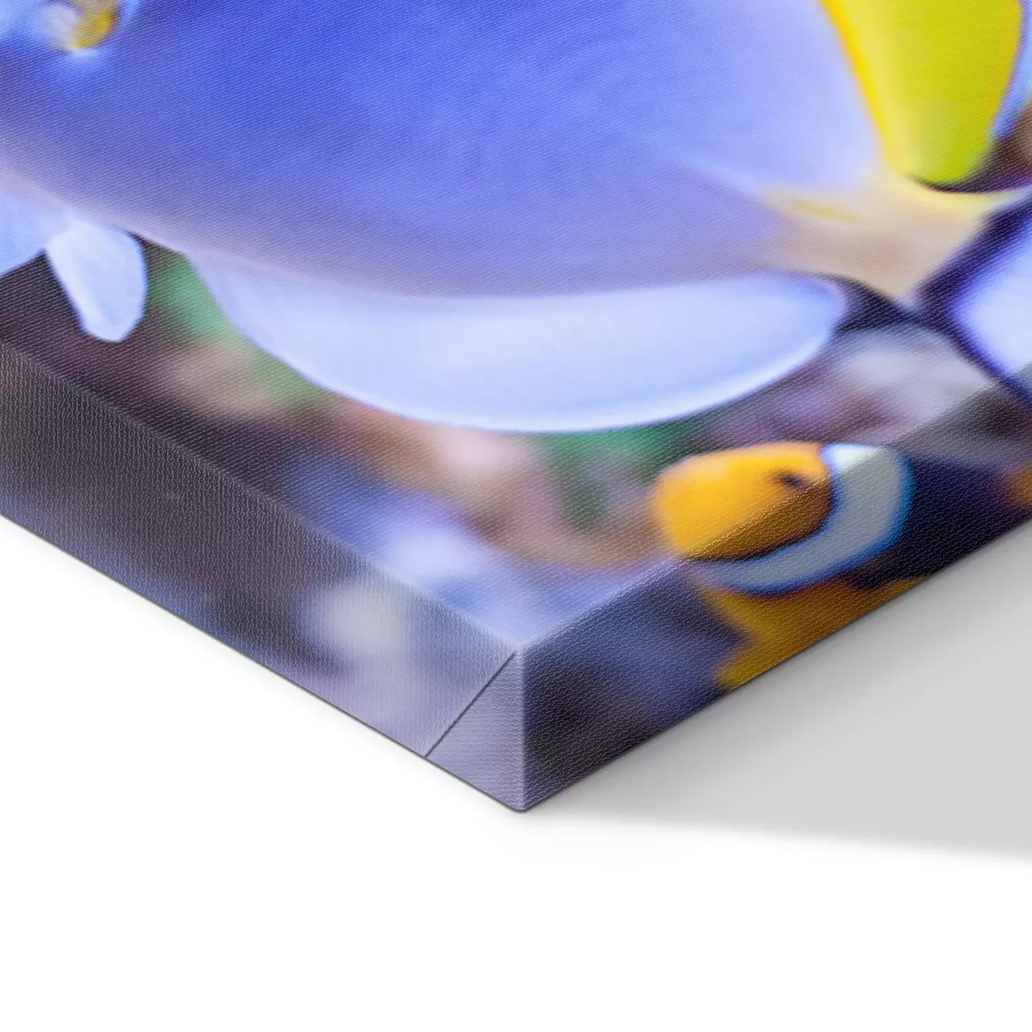 De print wordt aangebracht op hoogwaardig canvas dat op een schildersweefgetouw (spieraam) wordt gespannen. Omdat de print de zijranden bedekt, hoeft het ontwerp niet met een extra kader te worden omlijst. Wij raden ook composities aan die uit meerdere foto's bestaan en zo een coherente compositie vormen.