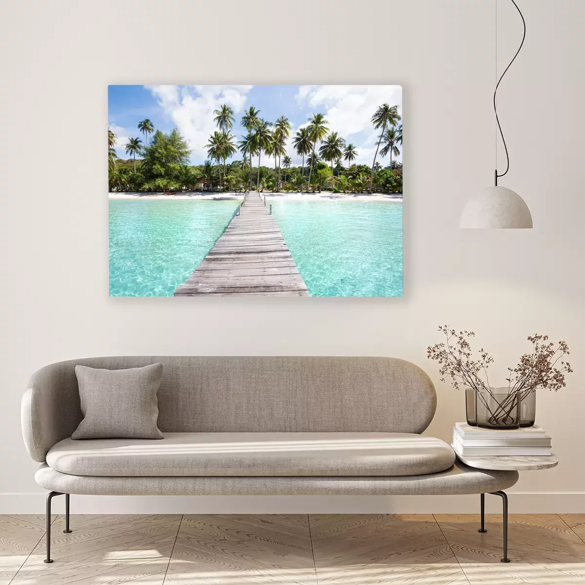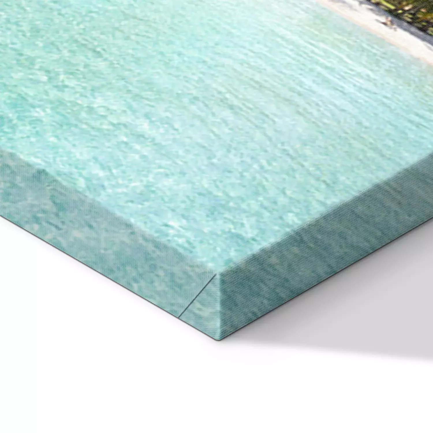 De print wordt aangebracht op hoogwaardig canvas dat op een schildersweefgetouw (spieraam) wordt gespannen. Omdat de print de zijranden bedekt, hoeft het ontwerp niet met een extra kader te worden omlijst. Wij raden ook composities aan die uit meerdere foto's bestaan en zo een coherente compositie vormen.