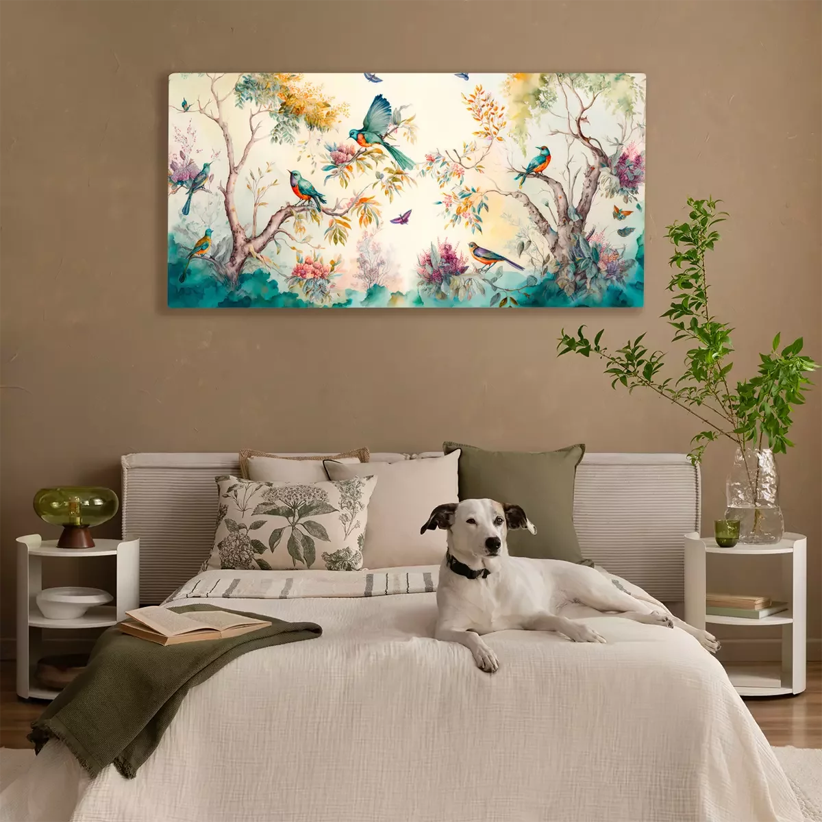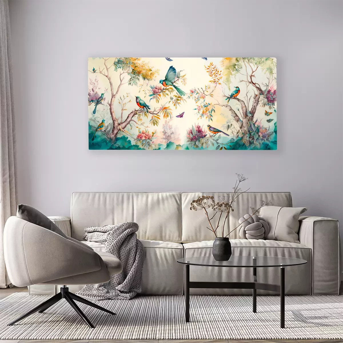 De print wordt aangebracht op hoogwaardig canvas dat op een schildersweefgetouw (spieraam) wordt gespannen. Omdat de print de zijranden bedekt, hoeft het ontwerp niet met een extra kader te worden omlijst. Wij raden ook composities aan die uit meerdere foto's bestaan en zo een coherente compositie vormen.