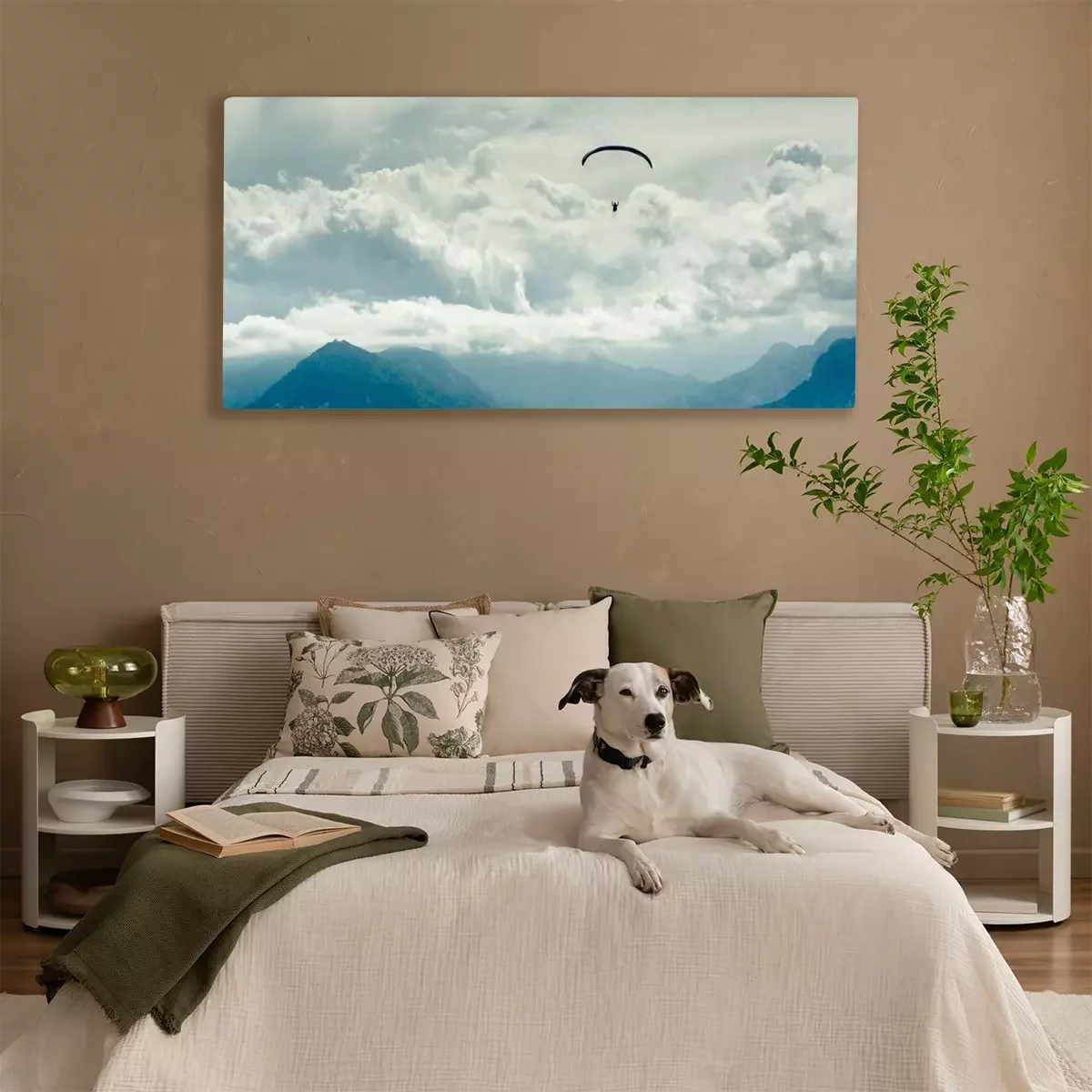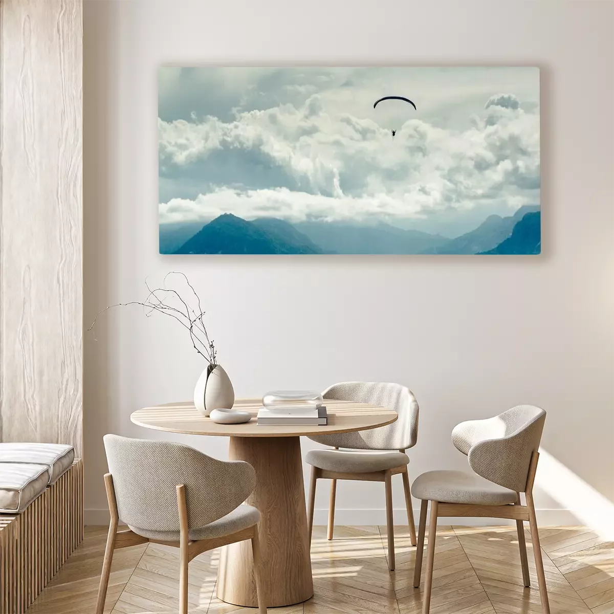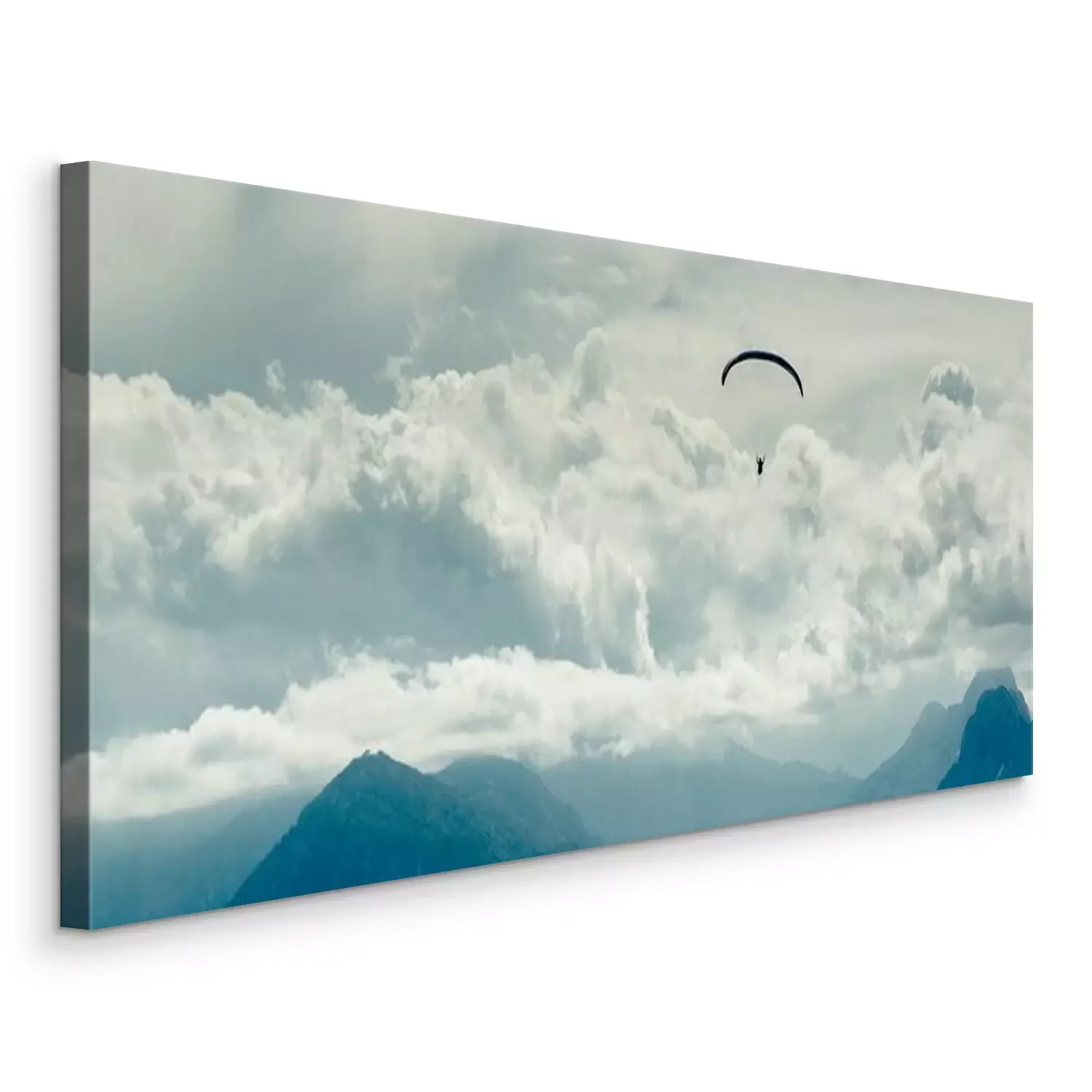 Canvas: Paraglider over bergen en bewolkte hemel achtergrond