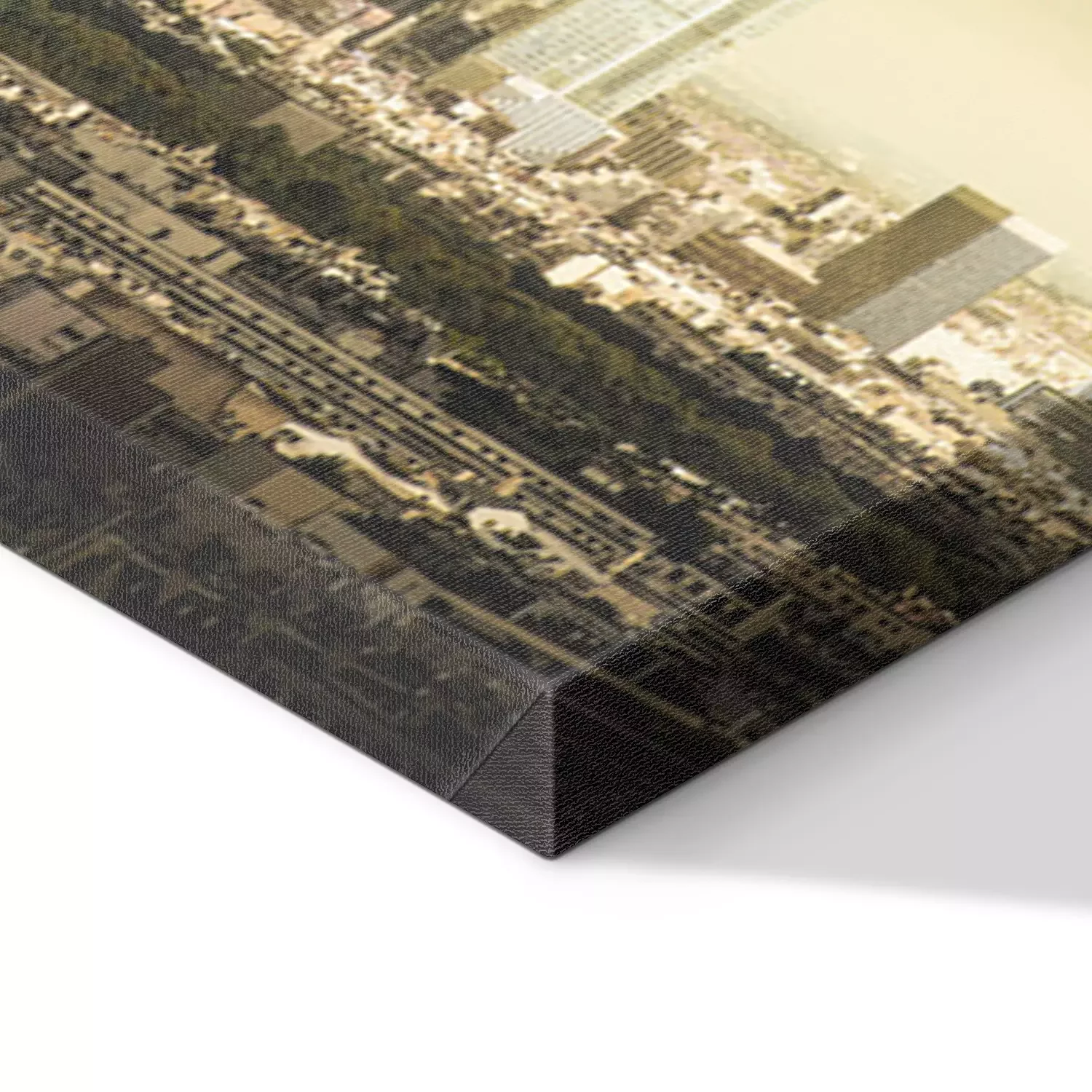 De print wordt aangebracht op hoogwaardig canvas dat op een schildersweefgetouw (spieraam) wordt gespannen. Omdat de print de zijranden bedekt, hoeft het ontwerp niet met een extra kader te worden omlijst. Wij raden ook composities aan die uit meerdere foto's bestaan en zo een coherente compositie vormen.