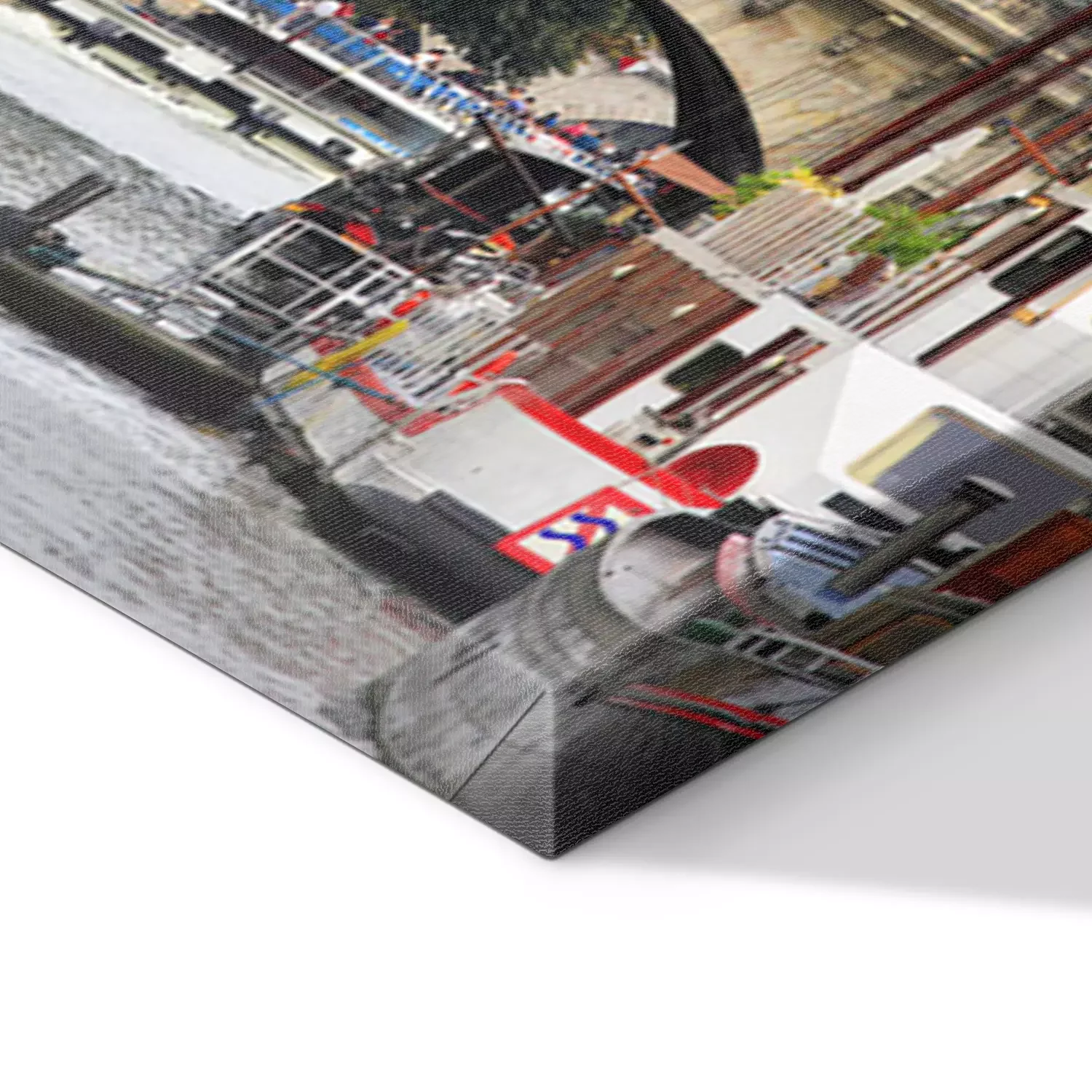 De print wordt aangebracht op hoogwaardig canvas dat op een schildersweefgetouw (spieraam) wordt gespannen. Omdat de print de zijranden bedekt, hoeft het ontwerp niet met een extra kader te worden omlijst. Wij raden ook composities aan die uit meerdere foto's bestaan en zo een coherente compositie vormen.