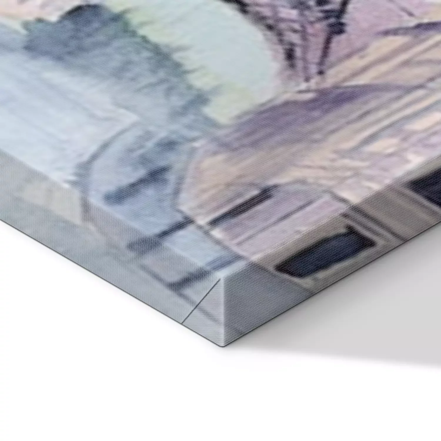 De print wordt aangebracht op hoogwaardig canvas dat op een schildersweefgetouw (spieraam) wordt gespannen. Omdat de print de zijranden bedekt, hoeft het ontwerp niet met een extra kader te worden omlijst. Wij raden ook composities aan die uit meerdere foto's bestaan en zo een coherente compositie vormen.