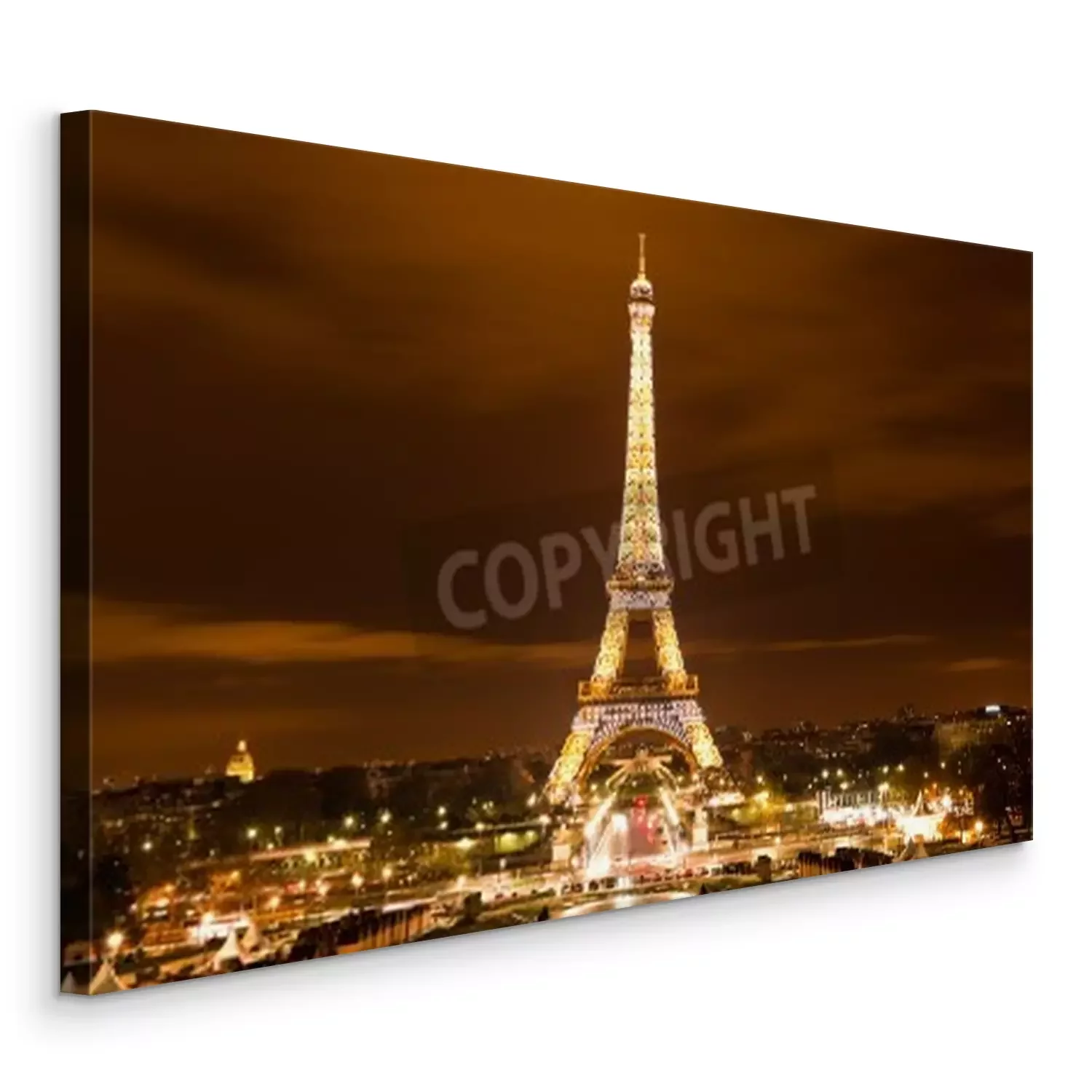 Canvas PARIJS, FRANKRIJK - 2 DECEMBER: Plechtige verlichting van de Eiffeltoren op 2 december 2010 in Parijs, Frankrijk. De Eiffeltoren is het meest bezochte monument van Frankrijk.