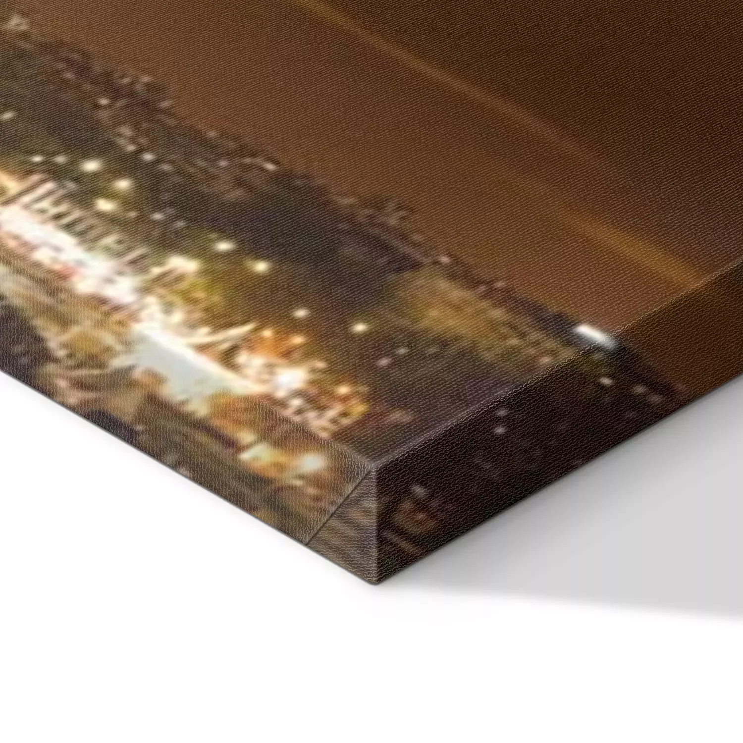 De print wordt aangebracht op hoogwaardig canvas dat op een schildersweefgetouw (spieraam) wordt gespannen. Omdat de print de zijranden bedekt, hoeft het ontwerp niet met een extra kader te worden omlijst. Wij raden ook composities aan die uit meerdere foto's bestaan en zo een coherente compositie vormen.