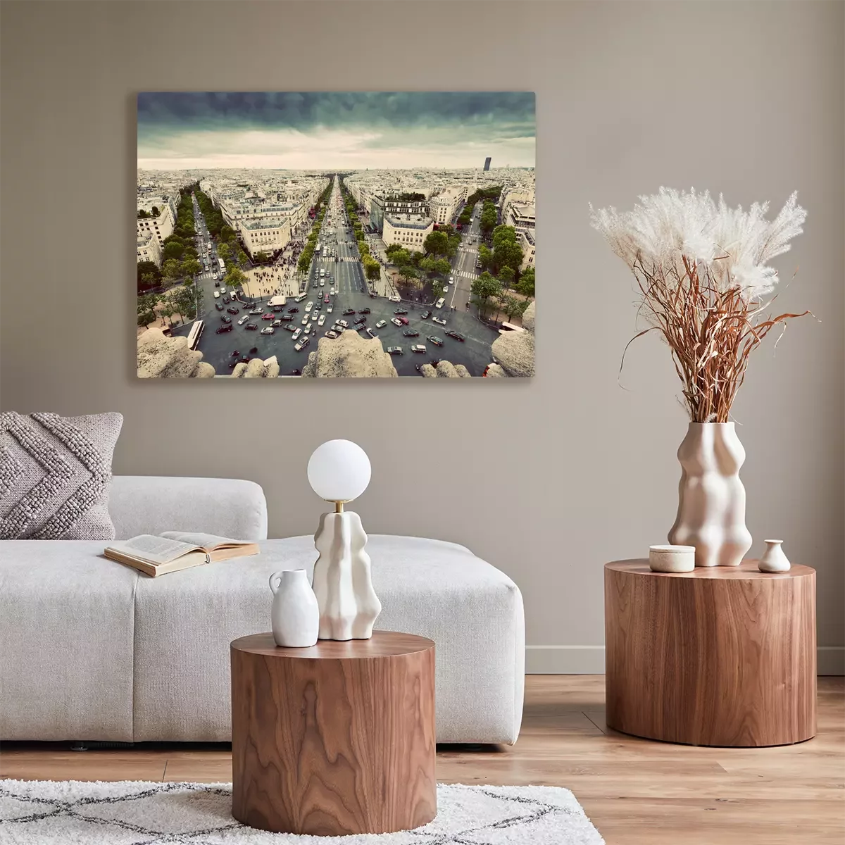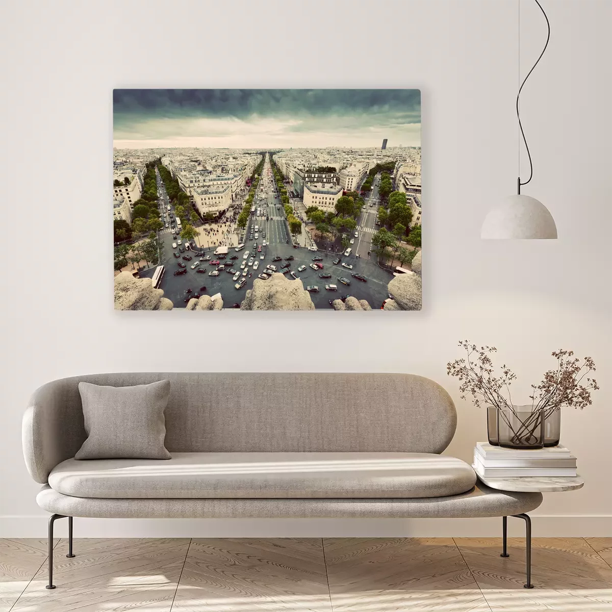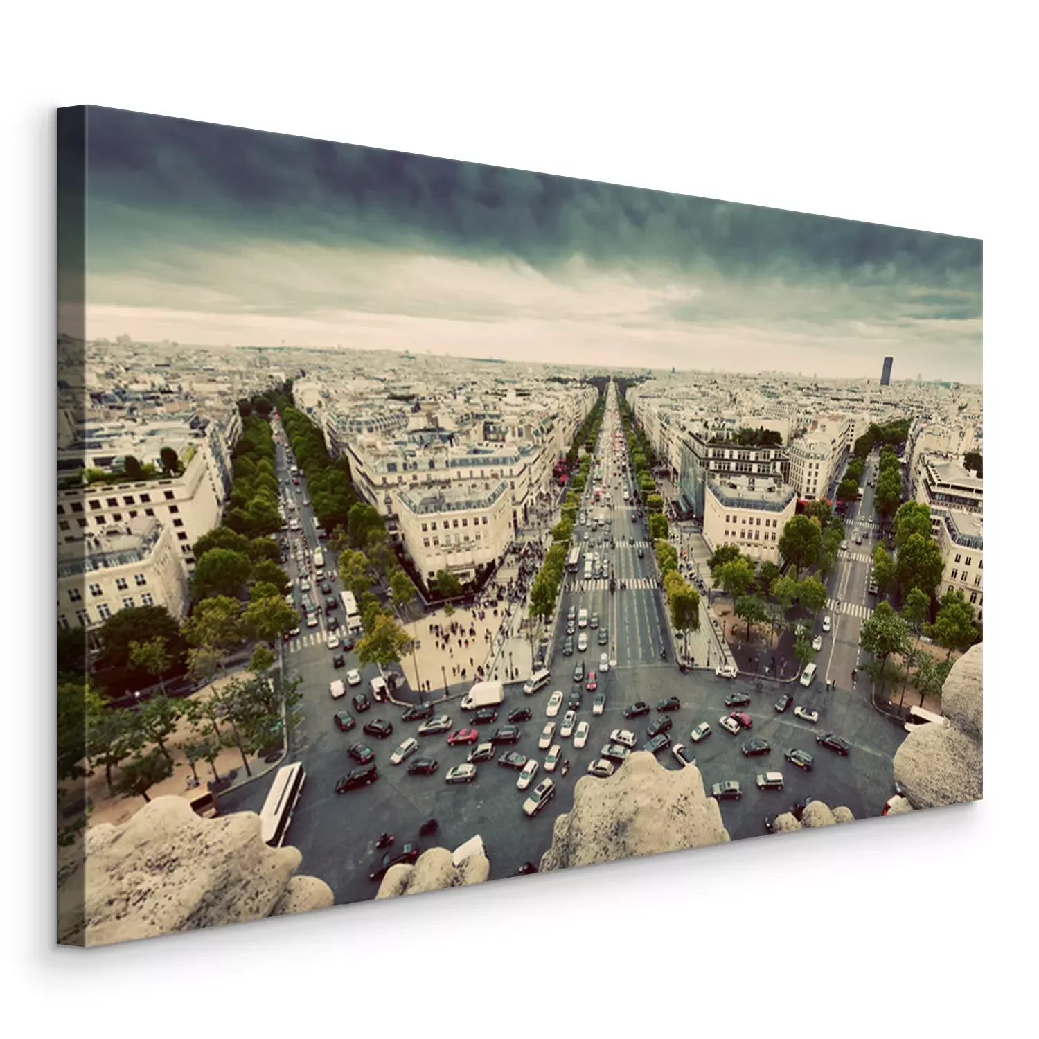 Canvas: Parijs, Frankrijk drukke straten, avenue des Champs-Elysees. Wijnoogst