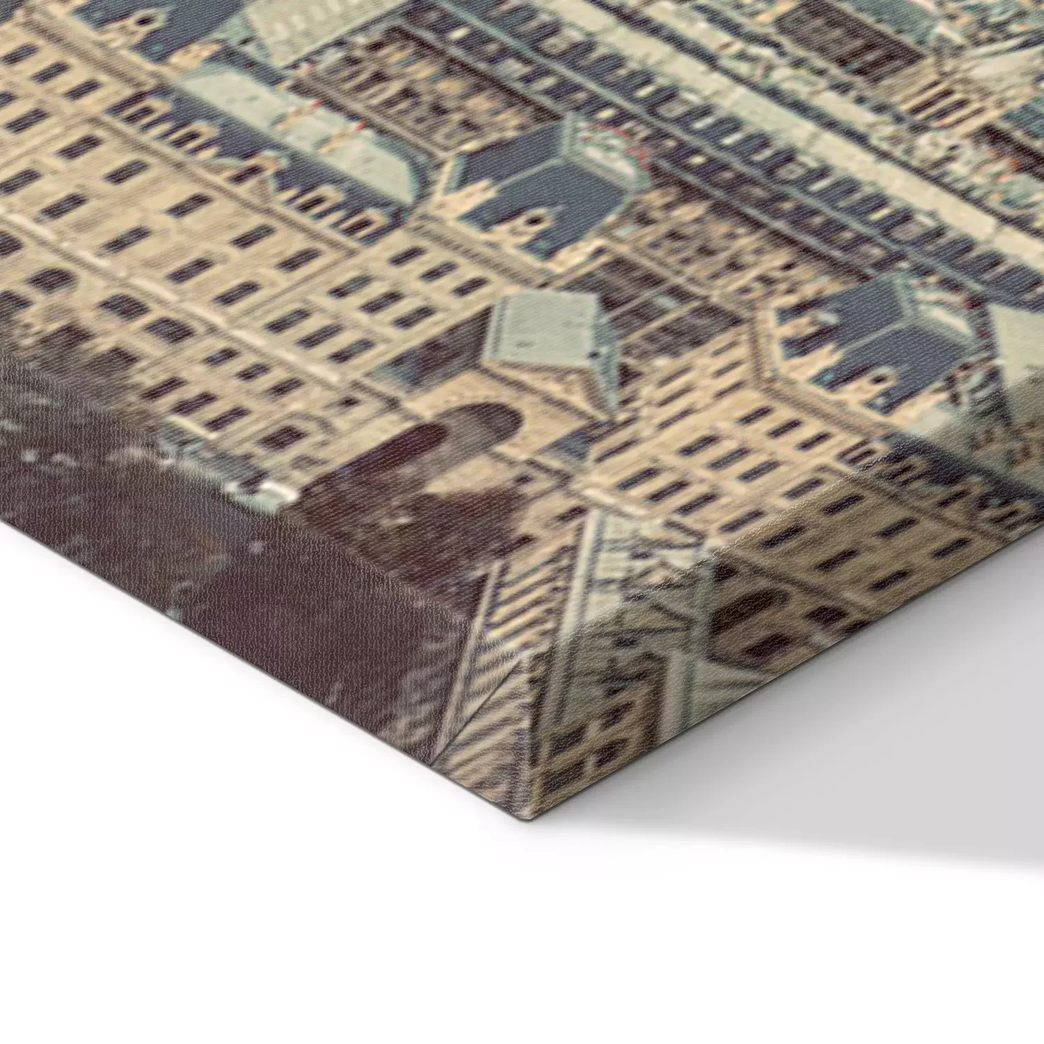 De print wordt aangebracht op hoogwaardig canvas dat op een schildersweefgetouw (spieraam) wordt gespannen. Omdat de print de zijranden bedekt, hoeft het ontwerp niet met een extra kader te worden omlijst. Wij raden ook composities aan die uit meerdere foto's bestaan en zo een coherente compositie vormen.