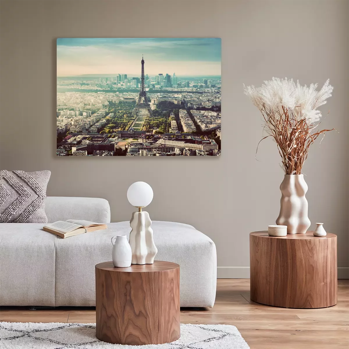 Canvas: Parijs, Frankrijk vintage skyline, panorama. Eiffeltoren, de Champ de Mars