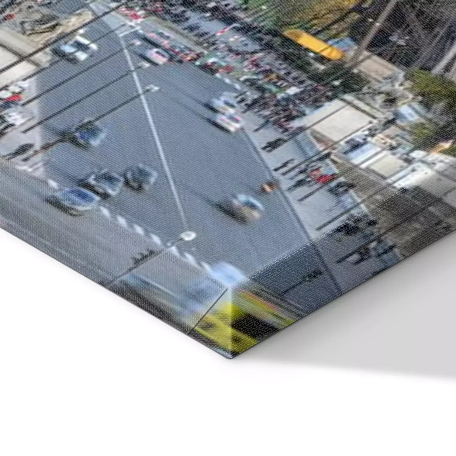 De print wordt aangebracht op hoogwaardig canvas dat op een schildersweefgetouw (spieraam) wordt gespannen. Omdat de print de zijranden bedekt, hoeft het ontwerp niet met een extra kader te worden omlijst. Wij raden ook composities aan die uit meerdere foto's bestaan en zo een coherente compositie vormen.