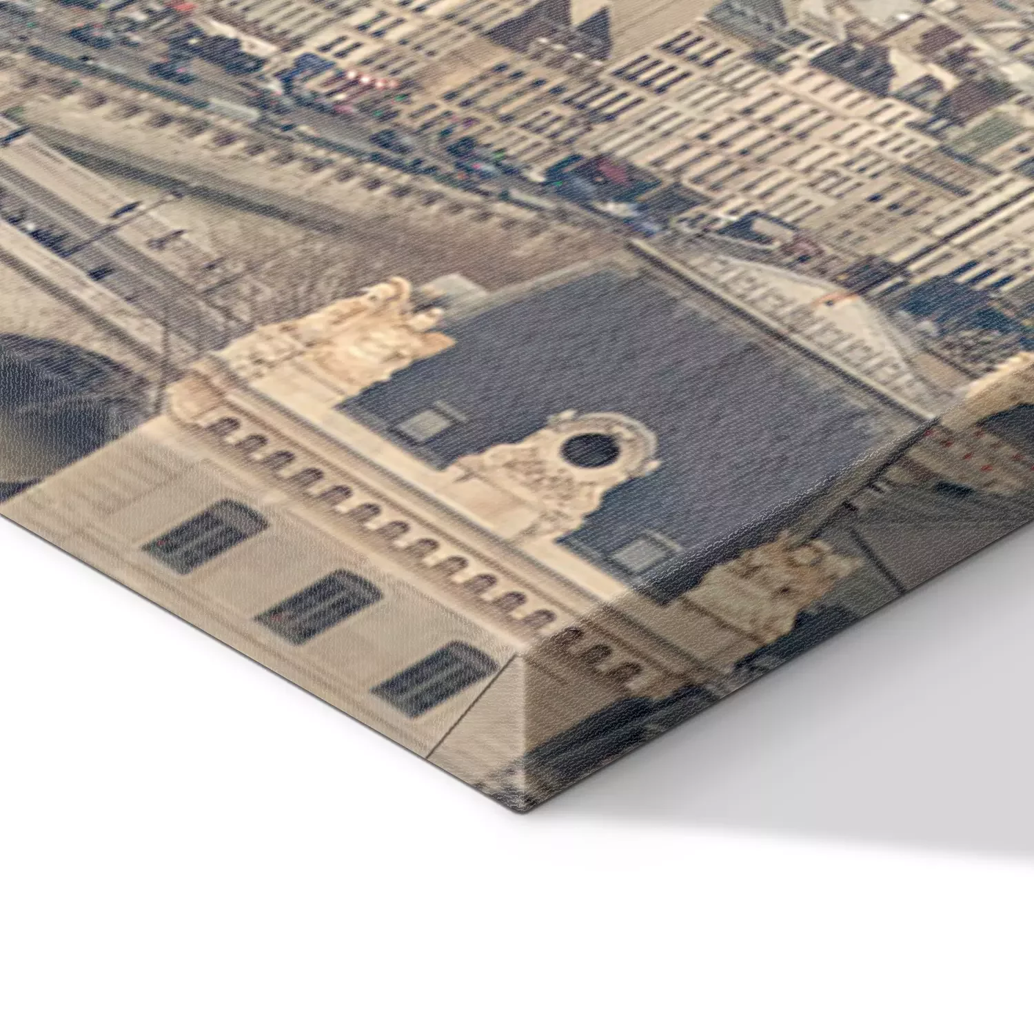 De print wordt aangebracht op hoogwaardig canvas dat op een schildersweefgetouw (spieraam) wordt gespannen. Omdat de print de zijranden bedekt, hoeft het ontwerp niet met een extra kader te worden omlijst. Wij raden ook composities aan die uit meerdere foto's bestaan en zo een coherente compositie vormen.