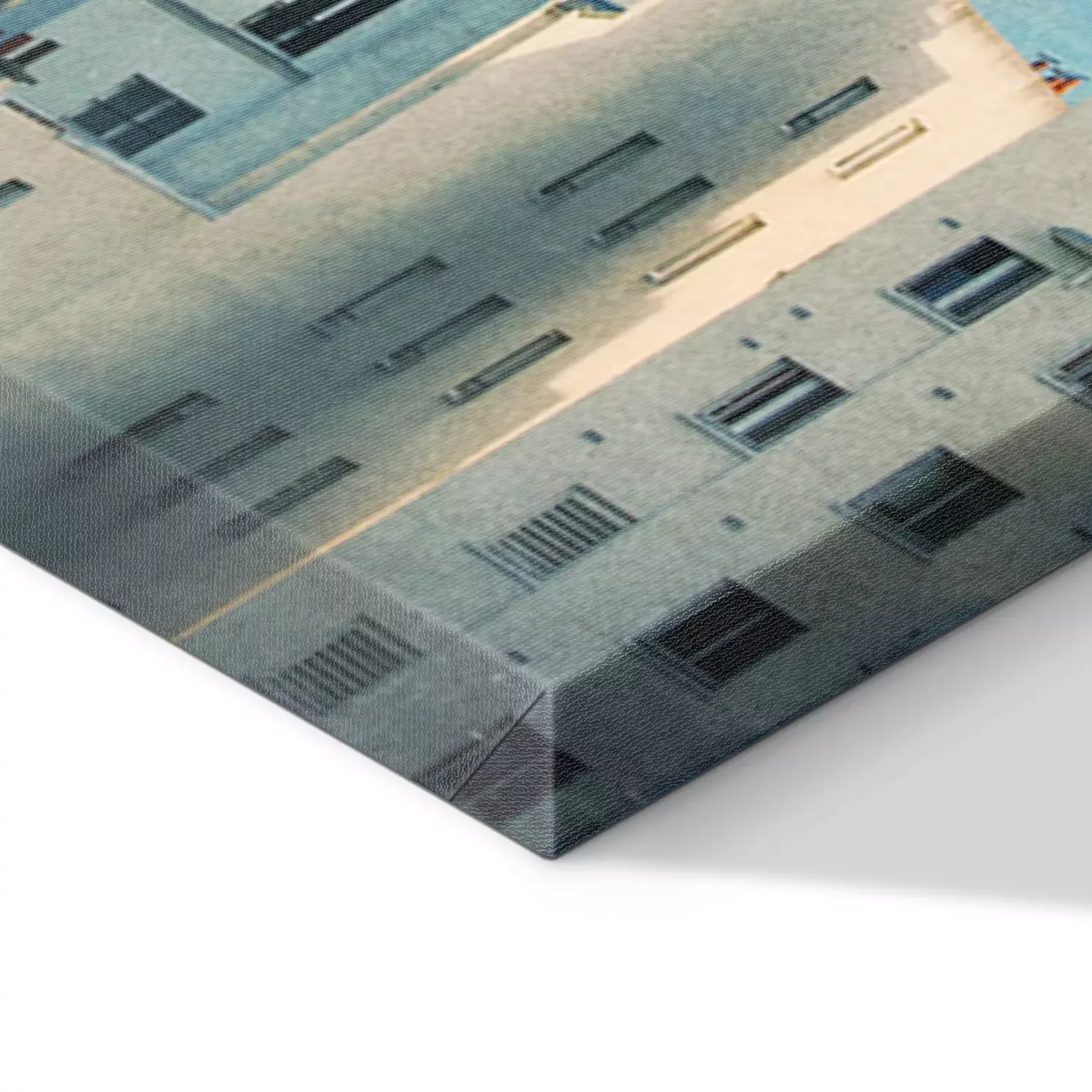 De print wordt aangebracht op hoogwaardig canvas dat op een schildersweefgetouw (spieraam) wordt gespannen. Omdat de print de zijranden bedekt, hoeft het ontwerp niet met een extra kader te worden omlijst. Wij raden ook composities aan die uit meerdere foto's bestaan en zo een coherente compositie vormen.