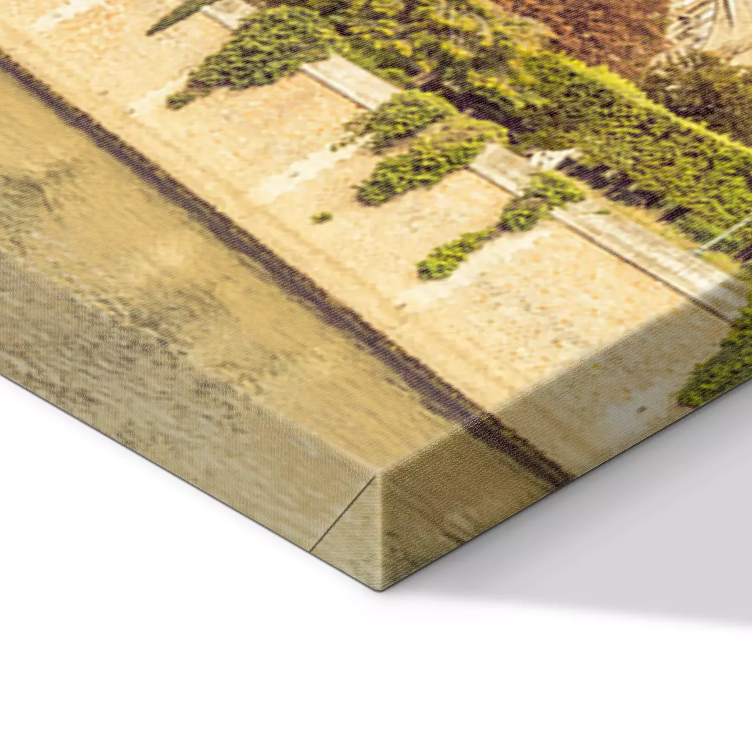 De print wordt aangebracht op hoogwaardig canvas dat op een schildersweefgetouw (spieraam) wordt gespannen. Omdat de print de zijranden bedekt, hoeft het ontwerp niet met een extra kader te worden omlijst. Wij raden ook composities aan die uit meerdere foto's bestaan en zo een coherente compositie vormen.