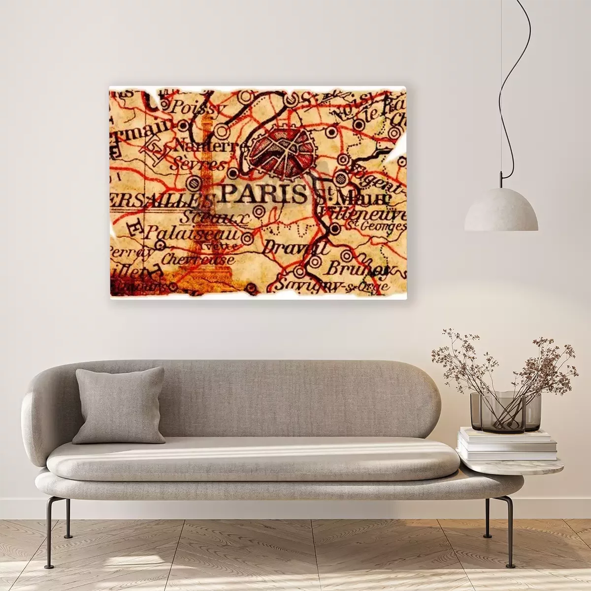 Canvas Paris on an old torn map with the eiffel tower, isolated. Part of the old map series.