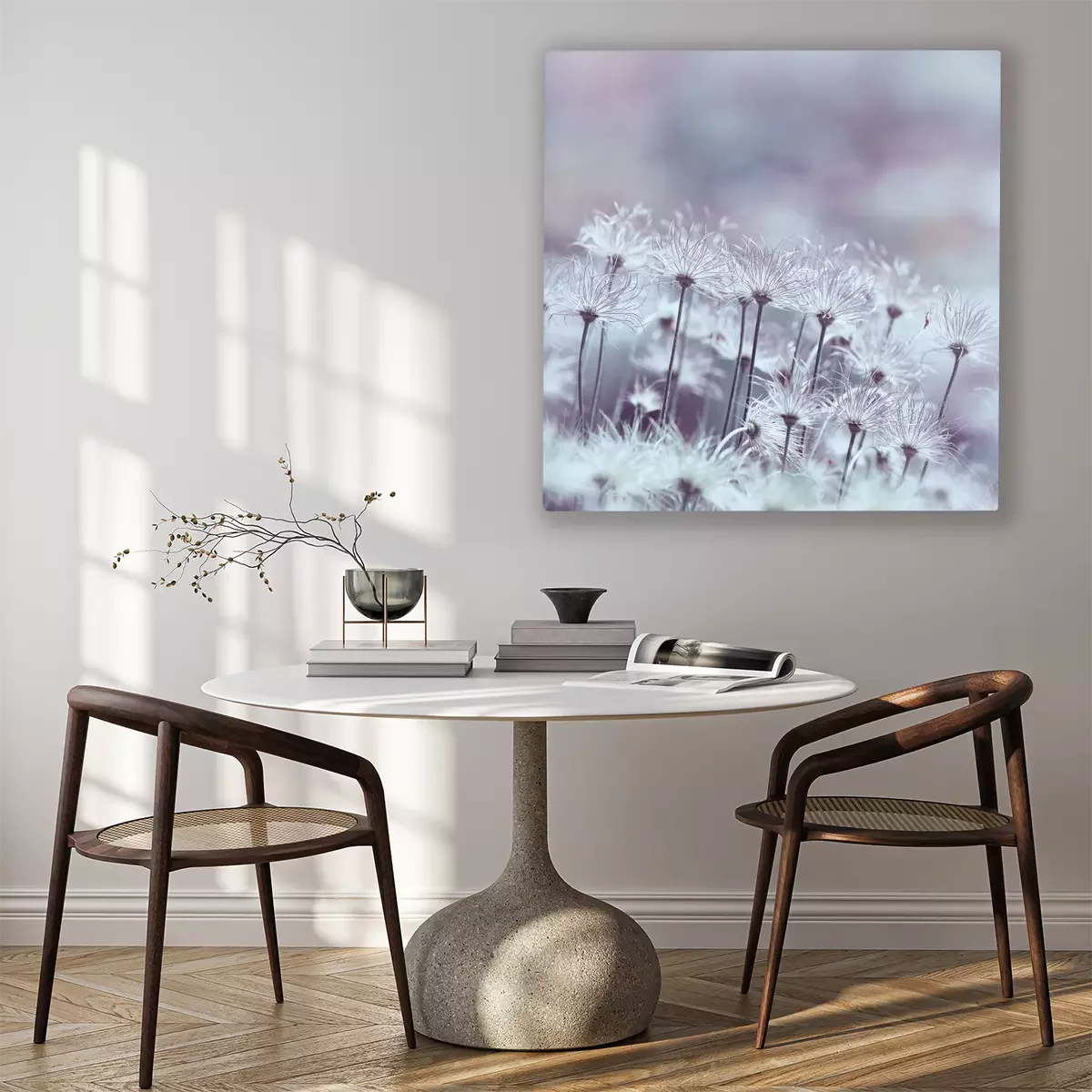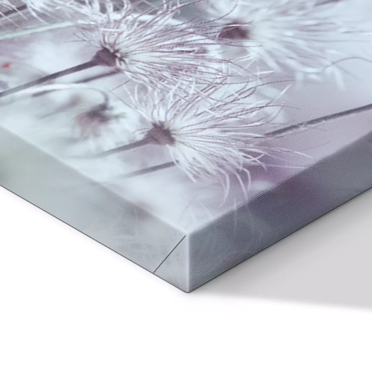 De print wordt aangebracht op hoogwaardig canvas dat op een schildersweefgetouw (spieraam) wordt gespannen. Omdat de print de zijranden bedekt, hoeft het ontwerp niet met een extra kader te worden omlijst. Wij raden ook composities aan die uit meerdere foto's bestaan en zo een coherente compositie vormen.