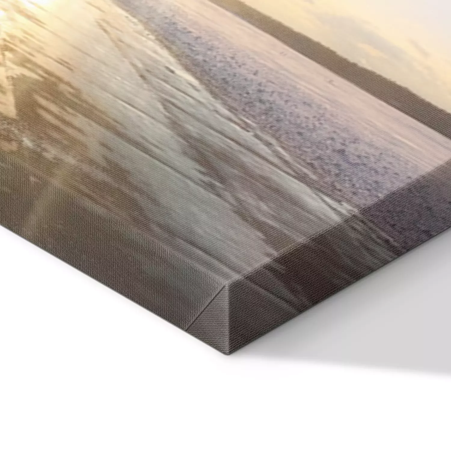 De print wordt aangebracht op hoogwaardig canvas dat op een schildersweefgetouw (spieraam) wordt gespannen. Omdat de print de zijranden bedekt, hoeft het ontwerp niet met een extra kader te worden omlijst. Wij raden ook composities aan die uit meerdere foto's bestaan en zo een coherente compositie vormen.