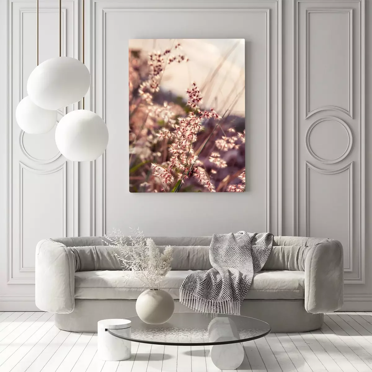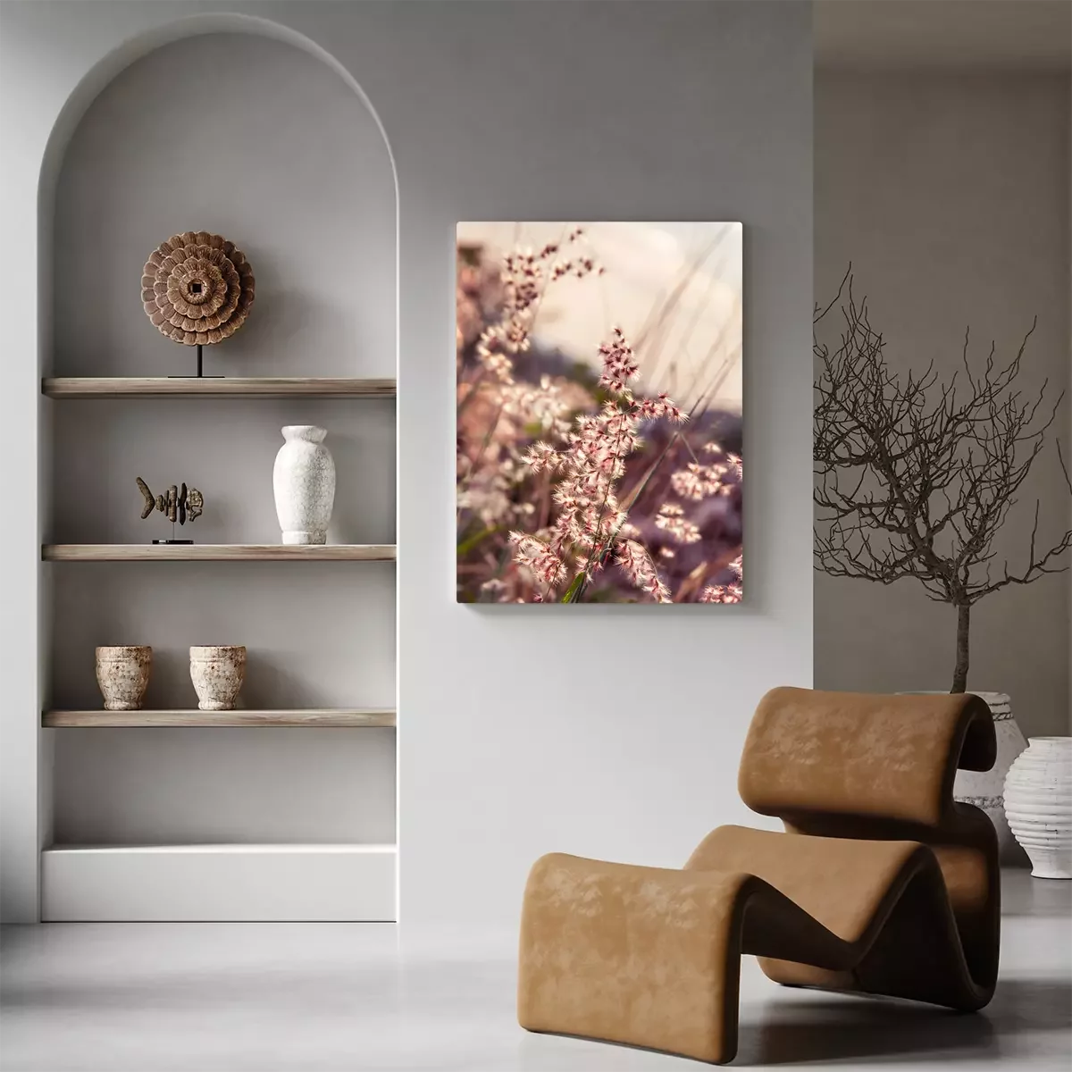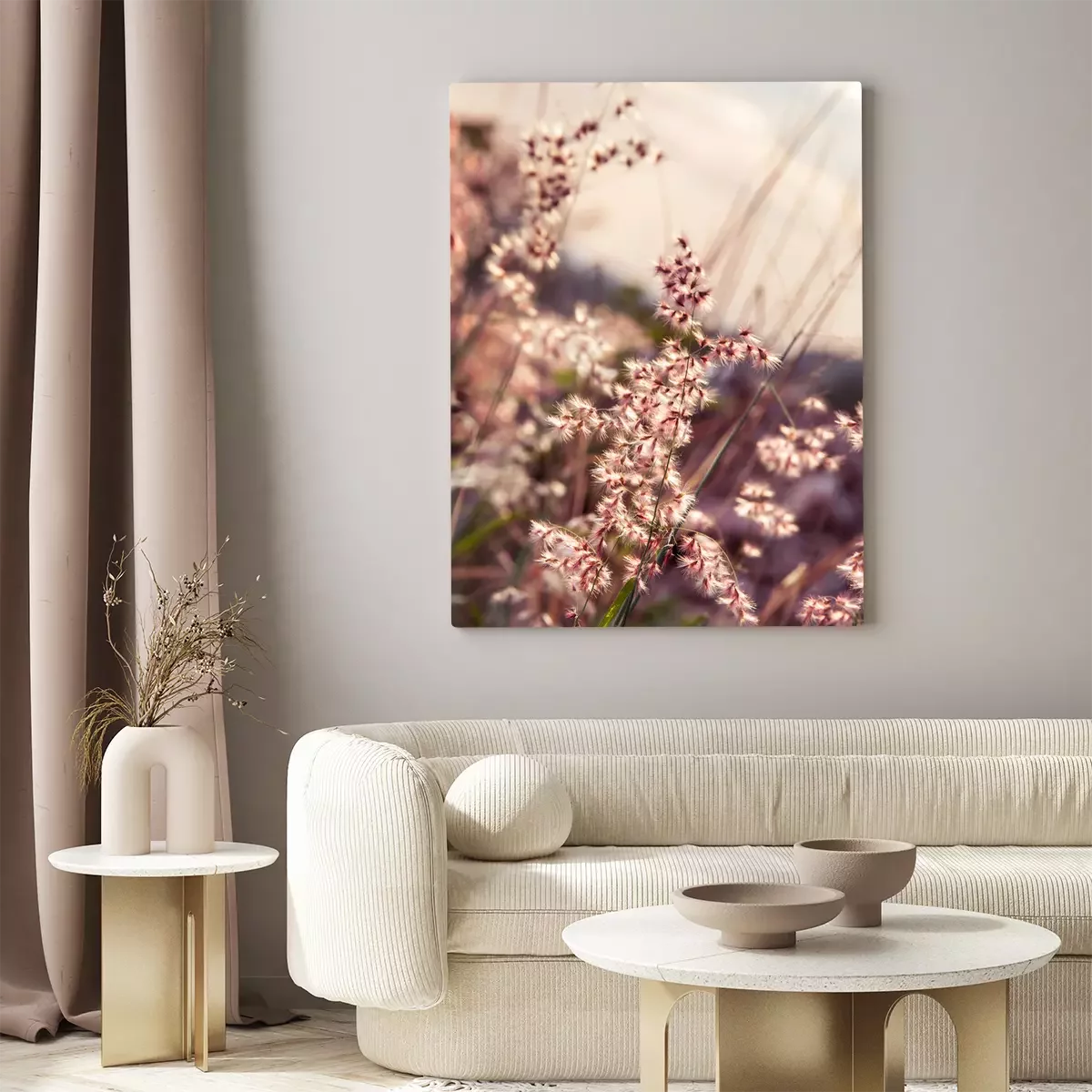 Canvas: Pastelkleurige bloemen op een onscherpe achtergrond