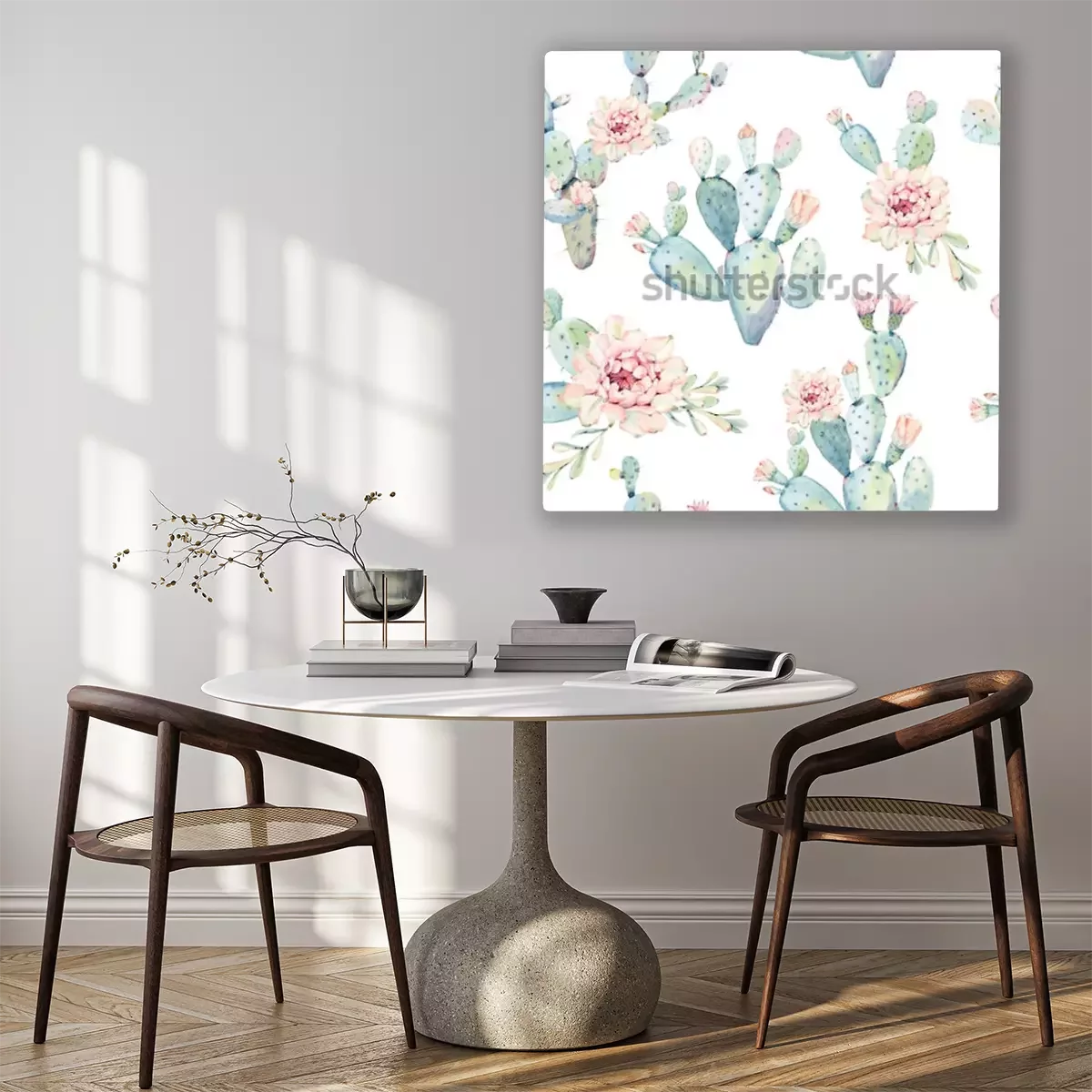 Canvas: Pastelkleurige cactussen op een lichte achtergrond