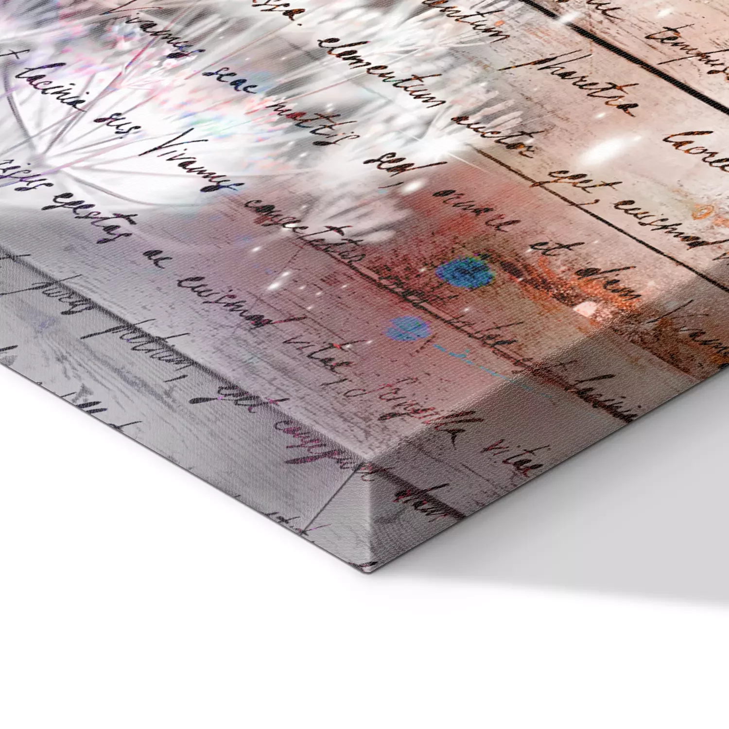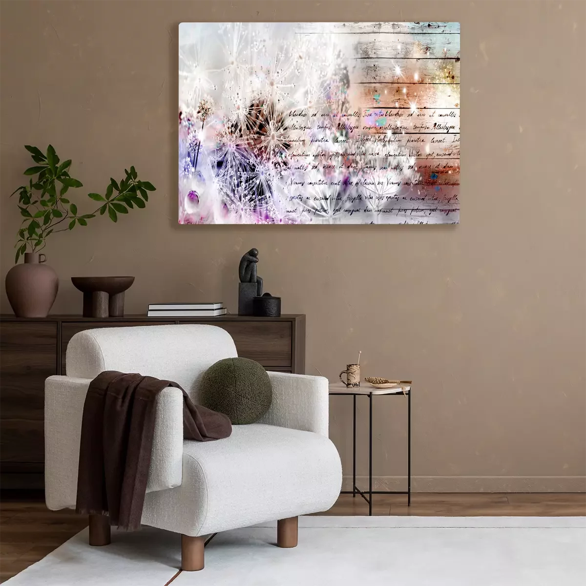 Pastelkleurige paardenbloemen met tekst op een houten achtergrond