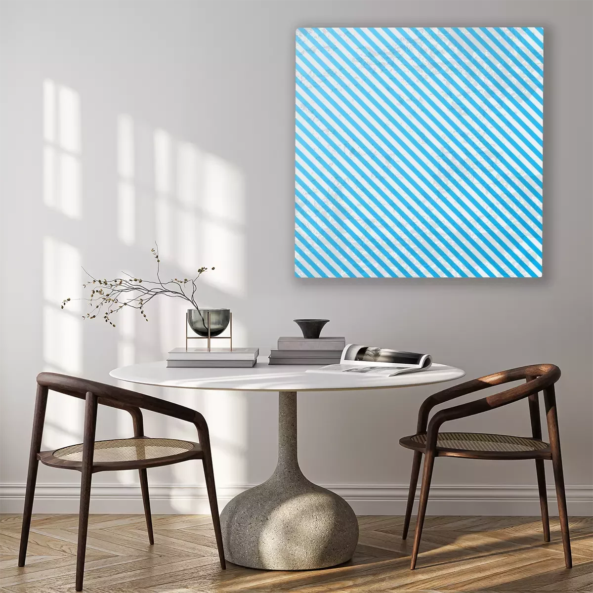 De print wordt aangebracht op hoogwaardig canvas dat op een schildersweefgetouw (spieraam) wordt gespannen. Omdat de print de zijranden bedekt, hoeft het ontwerp niet met een extra kader te worden omlijst. Wij raden ook composities aan die uit meerdere foto's bestaan en zo een coherente compositie vormen.