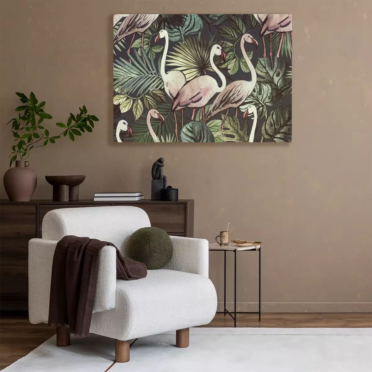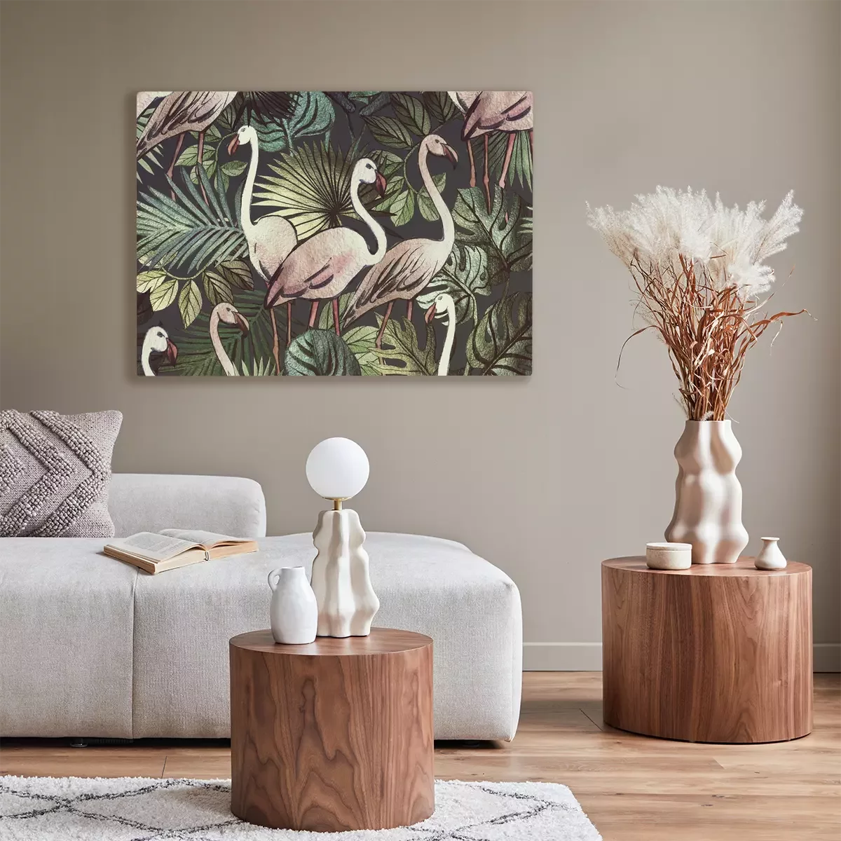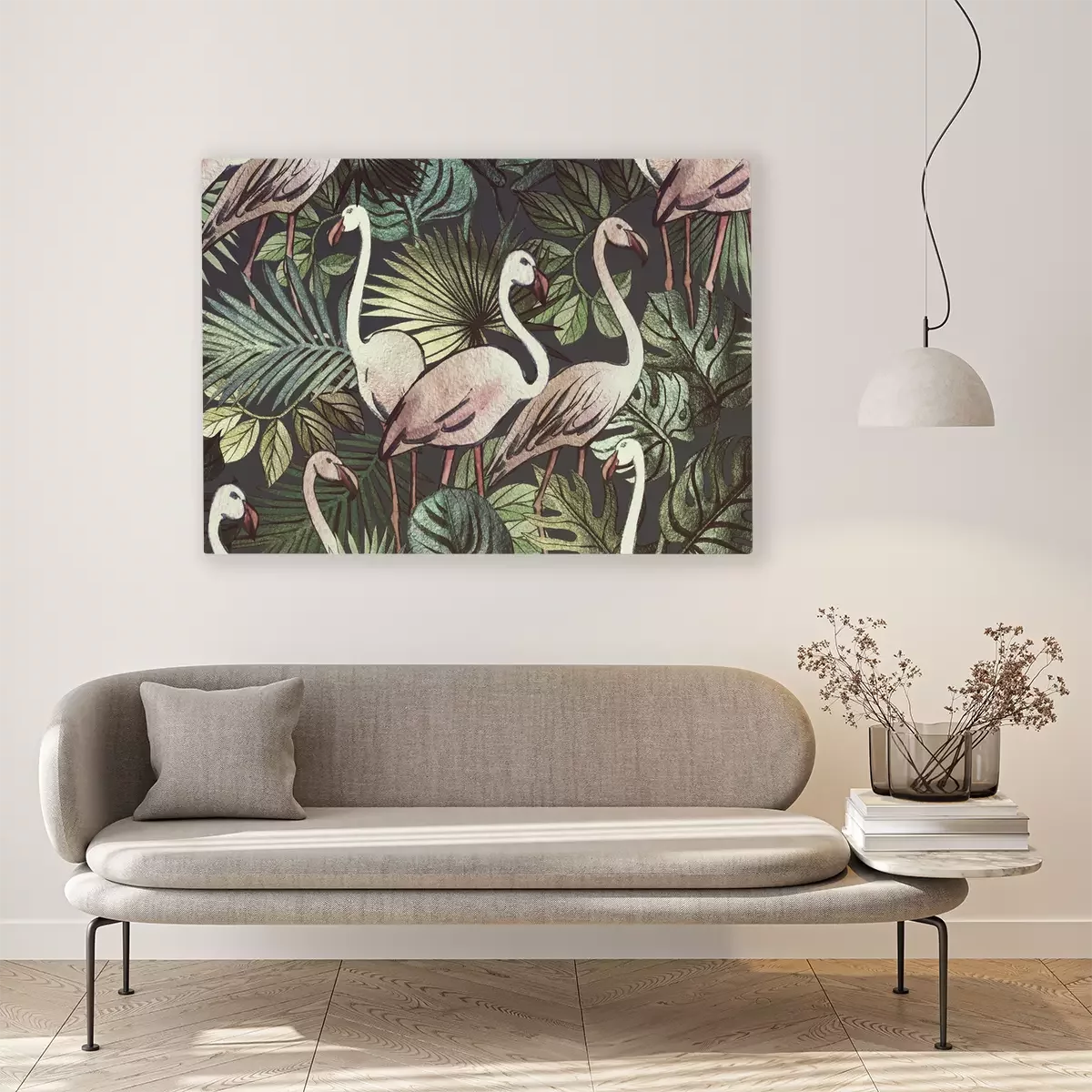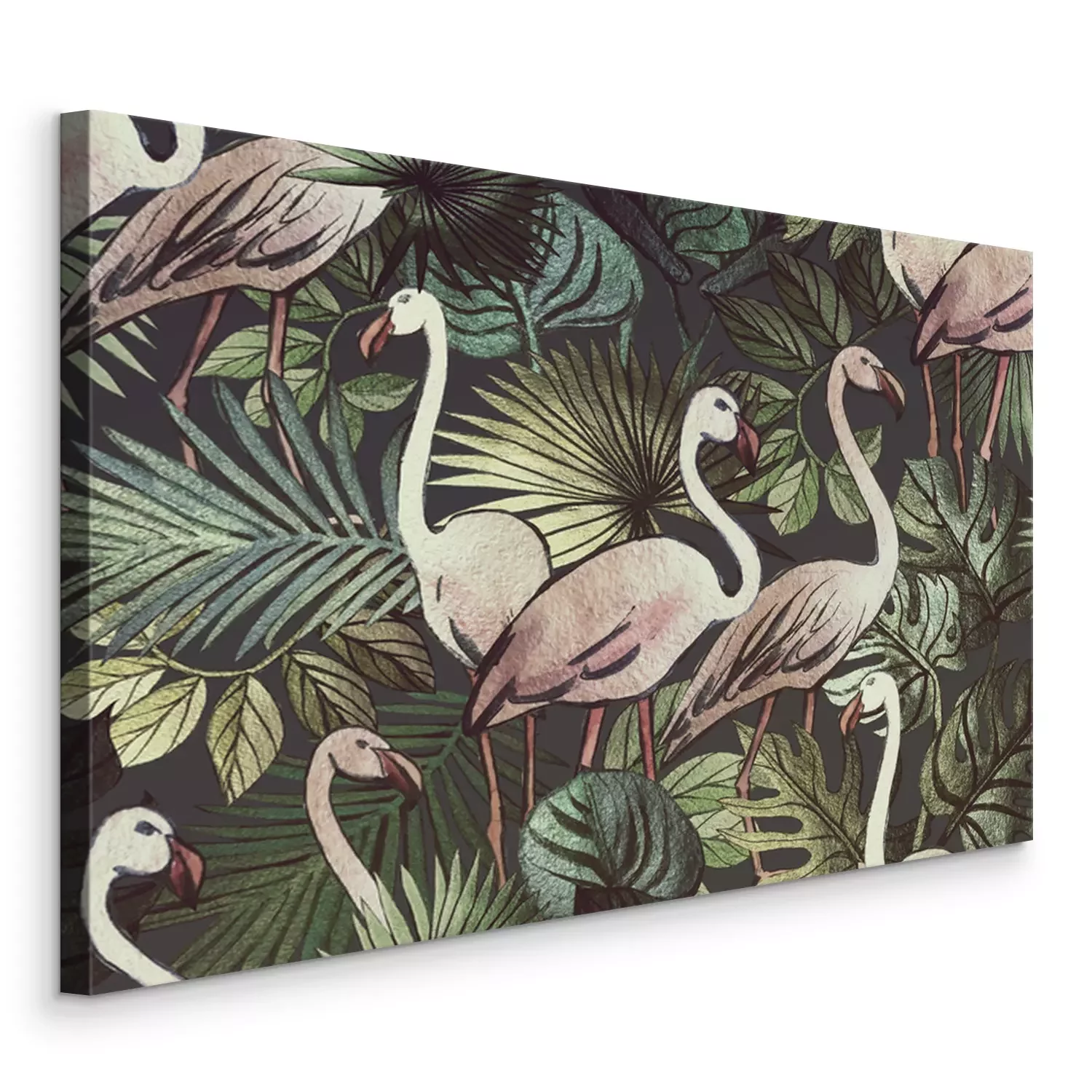 Canvas: Patroon met flamingo's en planten
