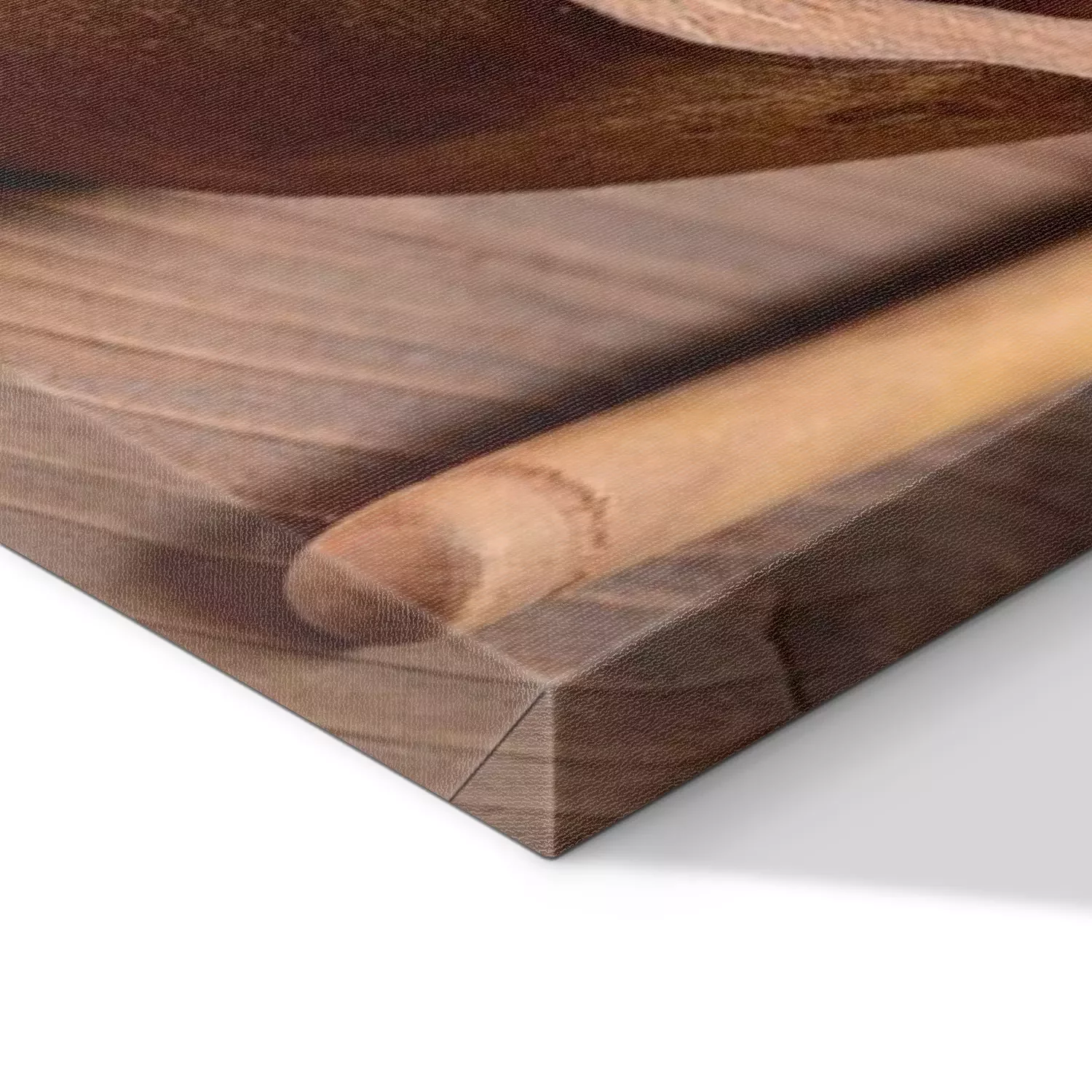 De print wordt aangebracht op hoogwaardig canvas dat op een schildersweefgetouw (spieraam) wordt gespannen. Omdat de print de zijranden bedekt, hoeft het ontwerp niet met een extra kader te worden omlijst. Wij raden ook composities aan die uit meerdere foto's bestaan en zo een coherente compositie vormen.