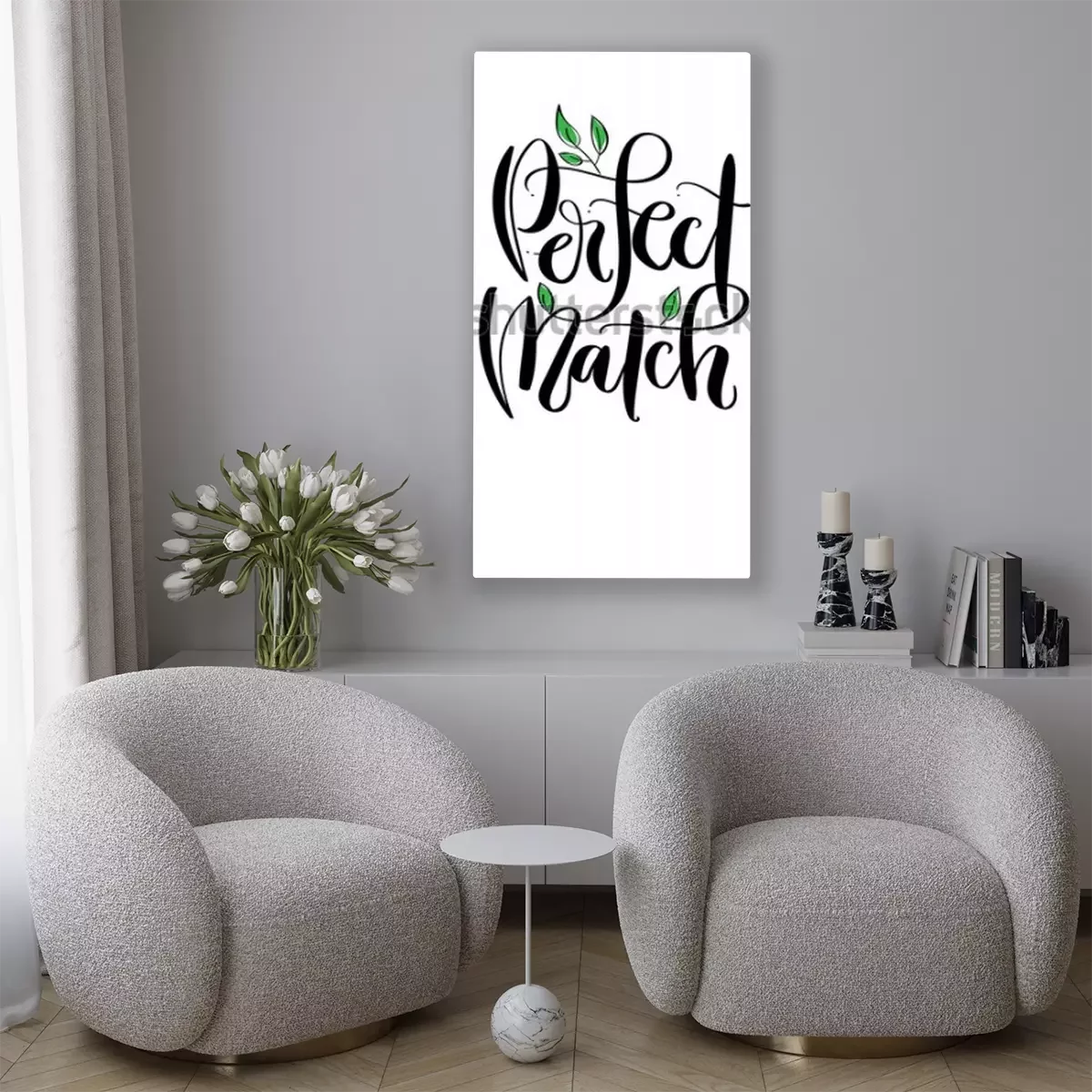 Canvas 'Perfect Match' - hand drawn lettering in modern calligraphy style.. Perfect for invitations, greeting cards, quotes, blogs, posters and more.