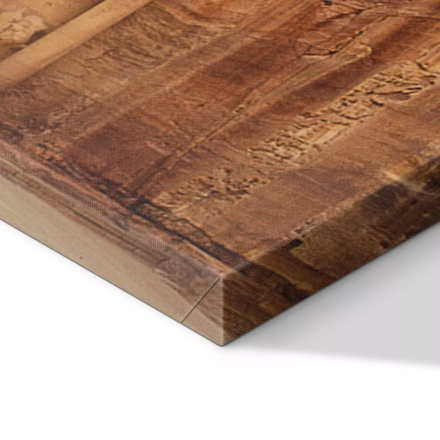 De print wordt aangebracht op hoogwaardig canvas dat op een schildersweefgetouw (spieraam) wordt gespannen. Omdat de print de zijranden bedekt, hoeft het ontwerp niet met een extra kader te worden omlijst. Wij raden ook composities aan die uit meerdere foto's bestaan en zo een coherente compositie vormen.