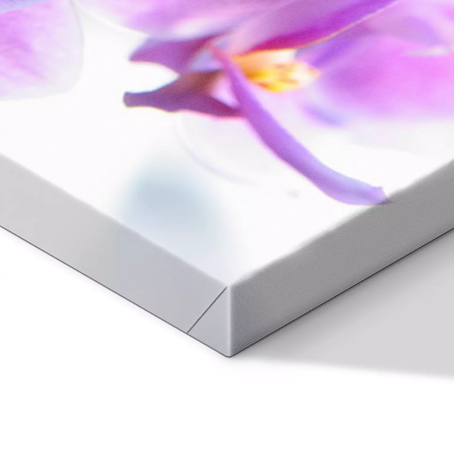 De print wordt aangebracht op hoogwaardig canvas dat op een schildersweefgetouw (spieraam) wordt gespannen. Omdat de print de zijranden bedekt, hoeft het ontwerp niet met een extra kader te worden omlijst. Wij raden ook composities aan die uit meerdere foto's bestaan en zo een coherente compositie vormen.