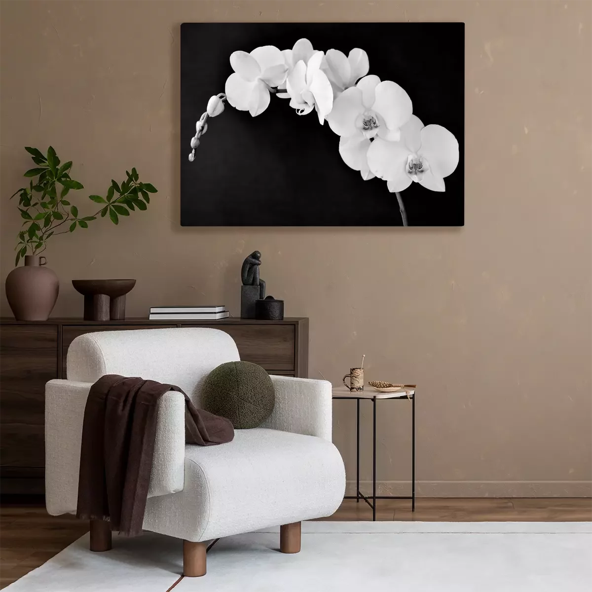 Canvas Phalaenopsis aphrodite orchidee, in zwart-wit