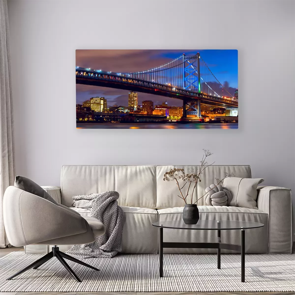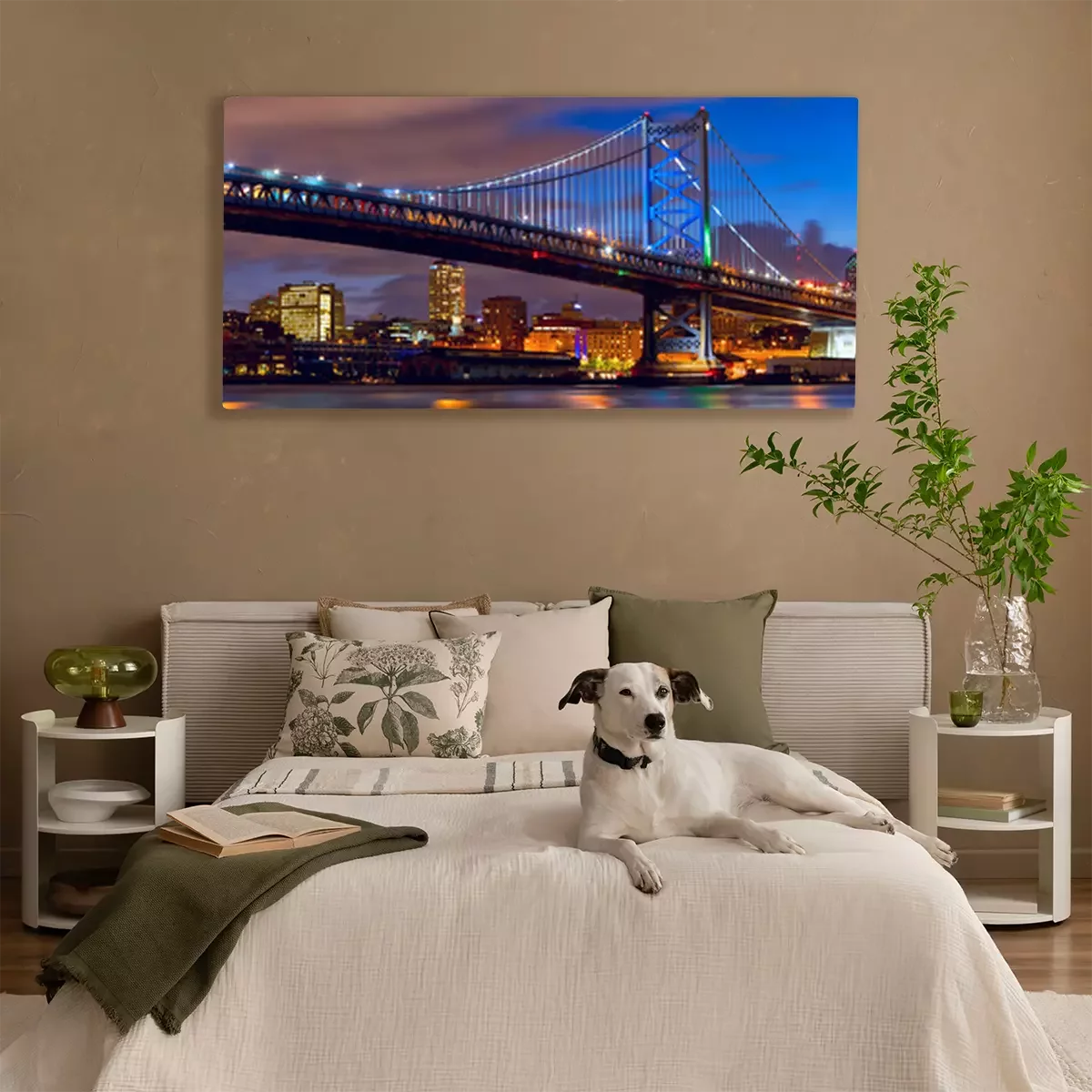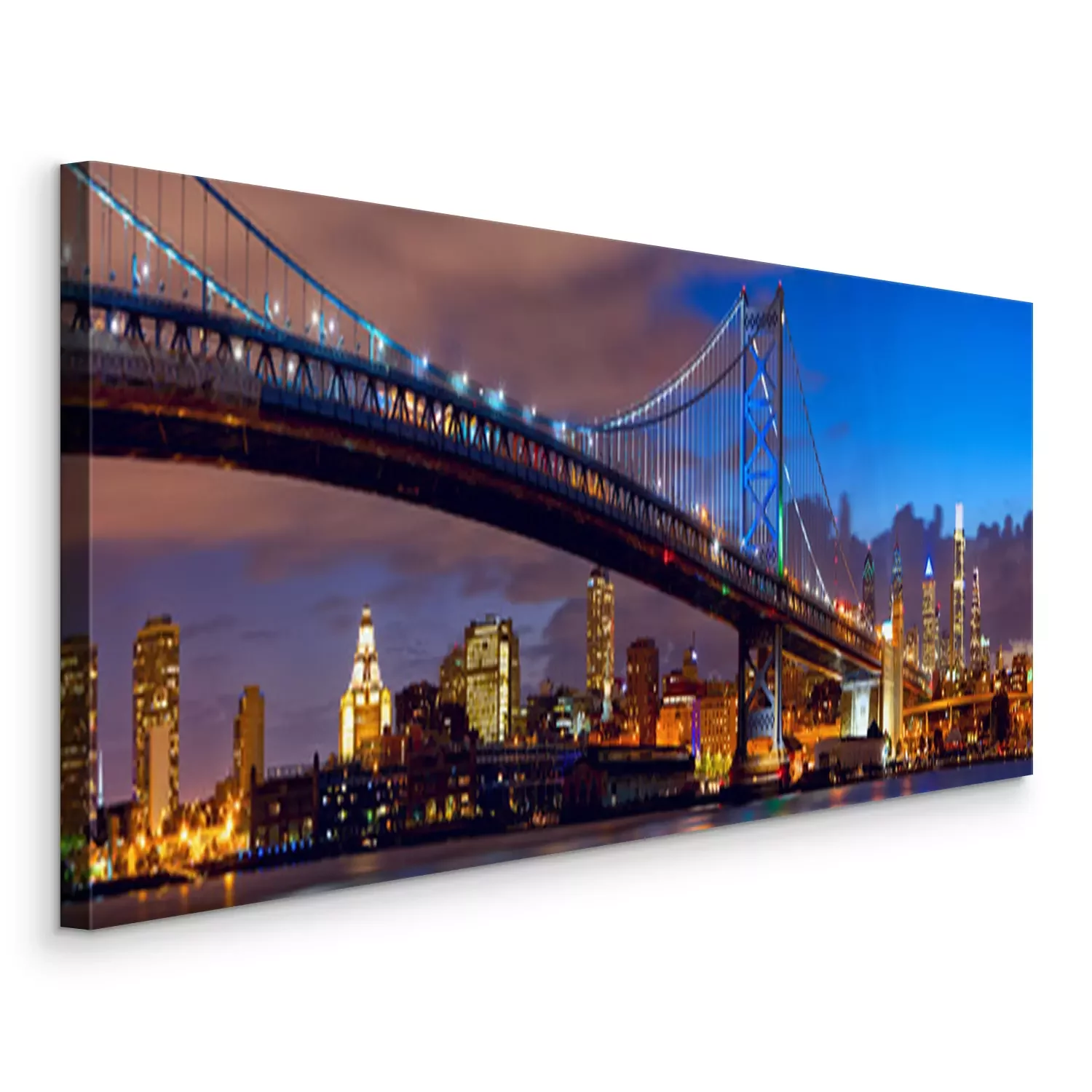 Canvas: Philadelphia skyline panorama bij zonsondergang, US
