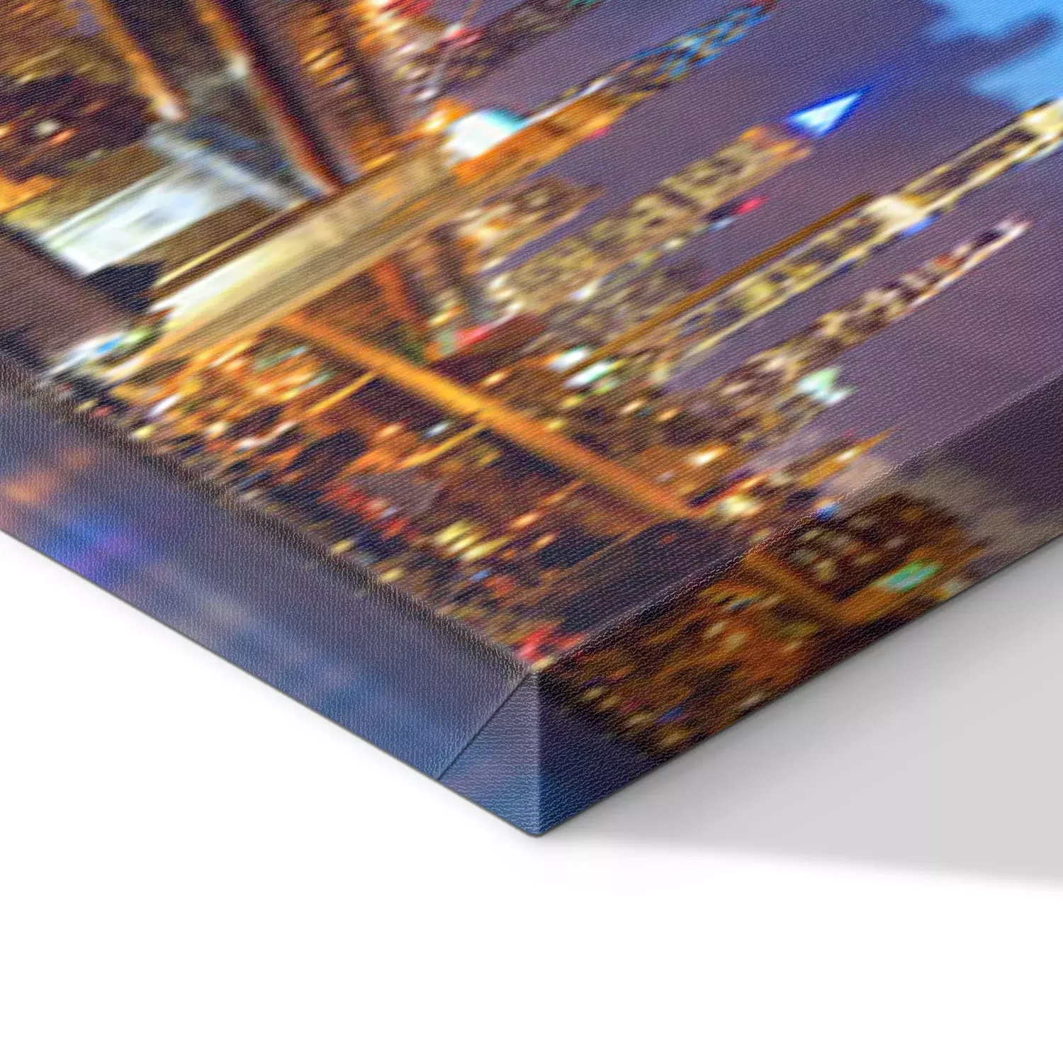 De print wordt aangebracht op hoogwaardig canvas dat op een schildersweefgetouw (spieraam) wordt gespannen. Omdat de print de zijranden bedekt, hoeft het ontwerp niet met een extra kader te worden omlijst. Wij raden ook composities aan die uit meerdere foto's bestaan en zo een coherente compositie vormen.