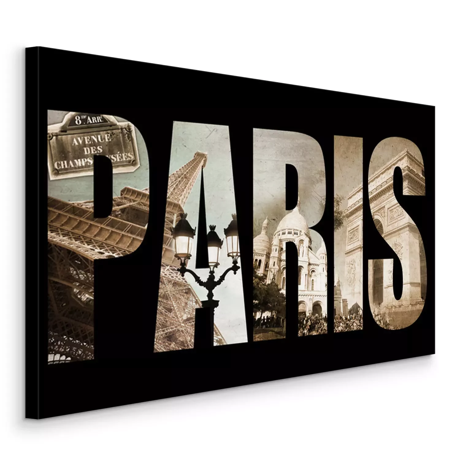 Canvas Photo collage letters PARIS, isolated on black background, vintage process