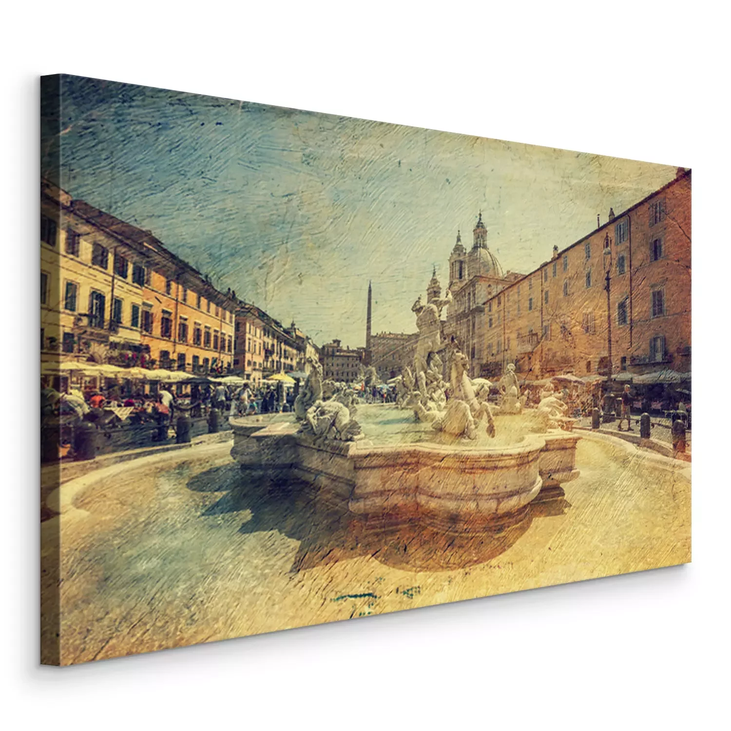 Canvas: Piazza Navona, Rome. Italië. Picture in artistieke retro stijl.