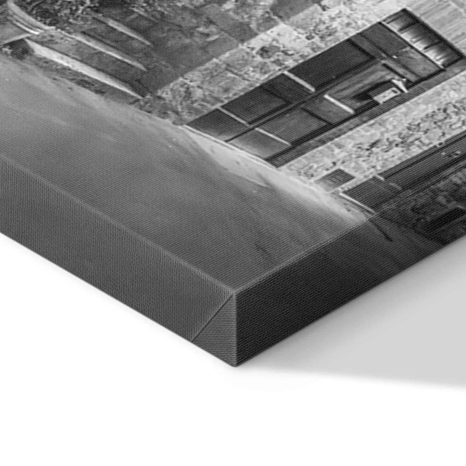 De print wordt aangebracht op hoogwaardig canvas dat op een schildersweefgetouw (spieraam) wordt gespannen. Omdat de print de zijranden bedekt, hoeft het ontwerp niet met een extra kader te worden omlijst. Wij raden ook composities aan die uit meerdere foto's bestaan en zo een coherente compositie vormen.