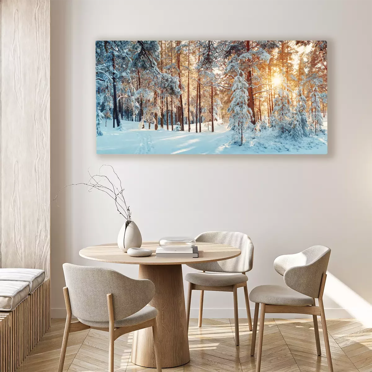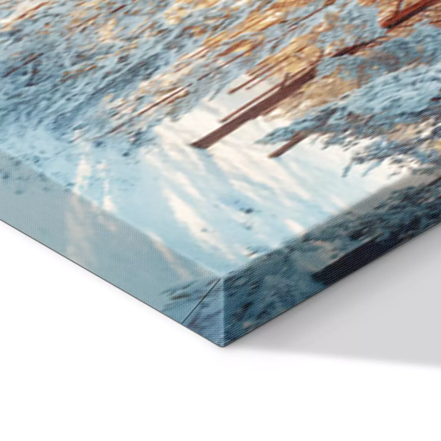 De print wordt aangebracht op hoogwaardig canvas dat op een schildersweefgetouw (spieraam) wordt gespannen. Omdat de print de zijranden bedekt, hoeft het ontwerp niet met een extra kader te worden omlijst. Wij raden ook composities aan die uit meerdere foto's bestaan en zo een coherente compositie vormen.