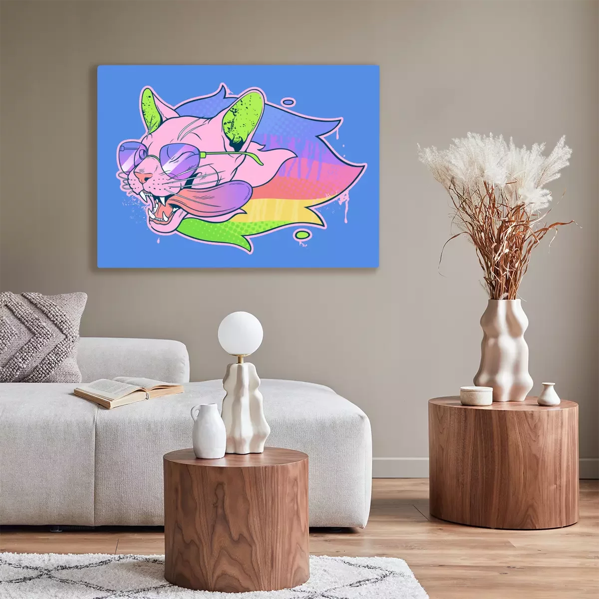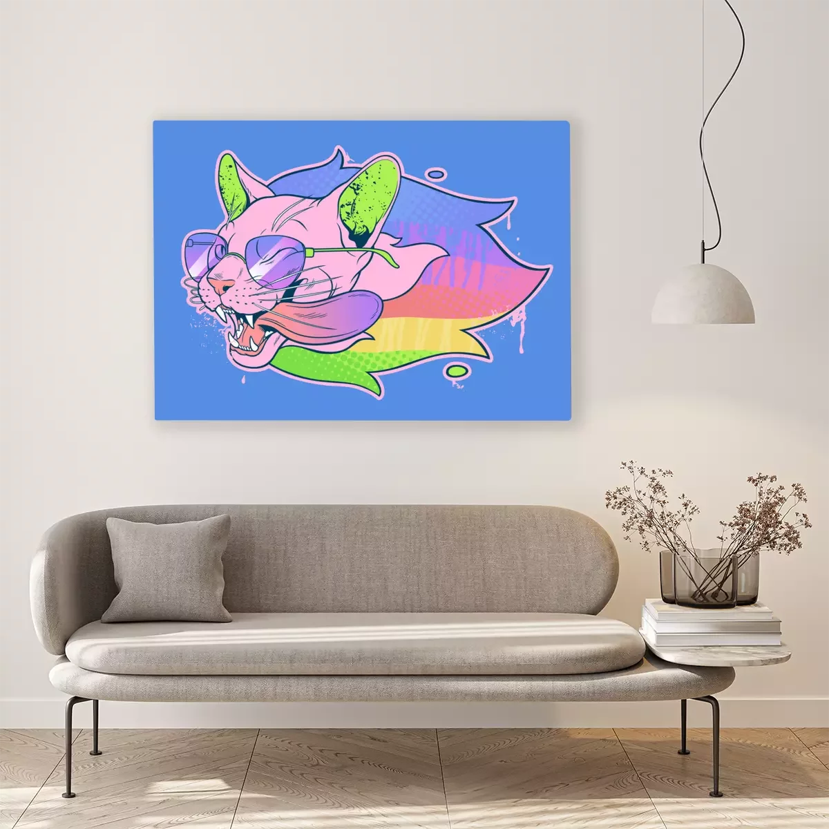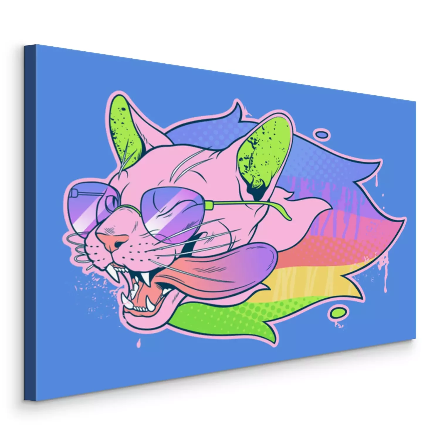 Canvas Pink cat head with glasses and rainbow. Can be use as T shirt print. Vector illustration.
