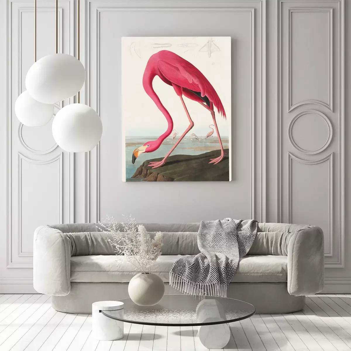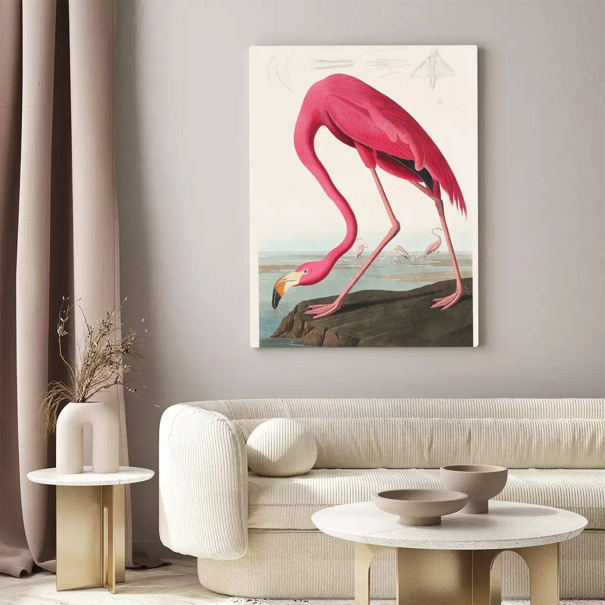 Canvas Pink Flamingo from Birds of America (1827) door John James Audubon (1785 - 1851), geëtst door Robert Havell (1793 - 1878)
