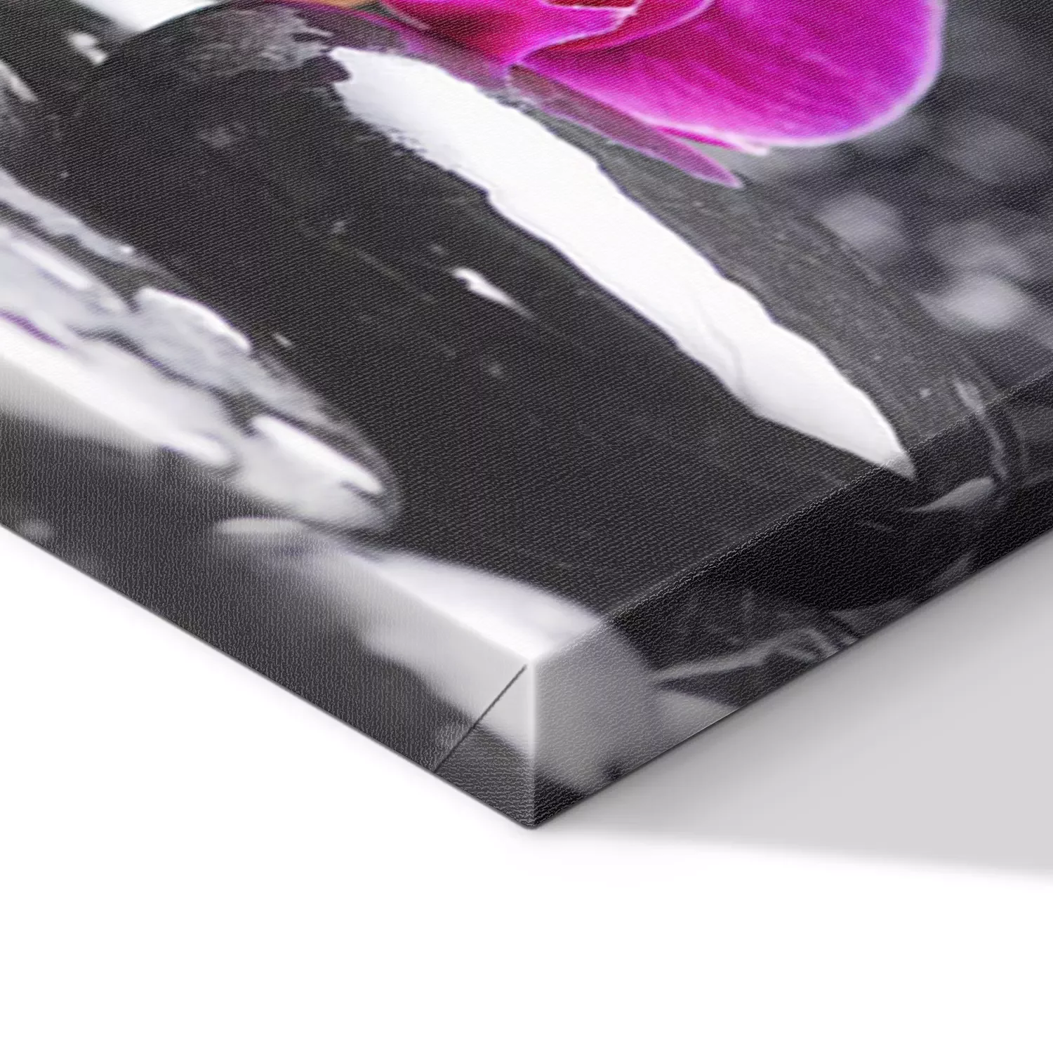De print wordt aangebracht op hoogwaardig canvas dat op een schildersweefgetouw (spieraam) wordt gespannen. Omdat de print de zijranden bedekt, hoeft het ontwerp niet met een extra kader te worden omlijst. Wij raden ook composities aan die uit meerdere foto's bestaan en zo een coherente compositie vormen.